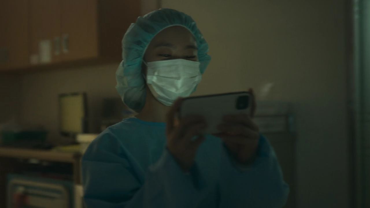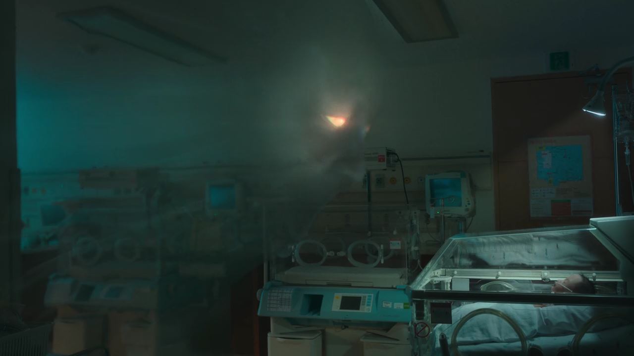 화면이 바뀌어.. 병원. 배영재 아내 송소현이 마스크와 머리캡을 쓰고 아기를 보러 갑니다. 신생아실로 들어온 송소현은 남들 눈에 보이지 않게 천 파티션을 치고 주머니에서 핸드폰을 꺼내 아이를 찍으려는데..순간..아이 머리 위 공중에서 천사가 나타나요. “송소현 아기, 너는 3일 후 21시 30분에 지옥에 간다~!!” 송소현이 들고 있는 핸드폰에 고스란히 그 모습이 찍히구요. 놀라서 입도 못 다물고 있는 송소현. 침대로 돌아와서 핸드폰으로 막 태어난 신생아가 고지를 받은 사례가 있는지 인터넷에서 검색해 보지만.. 그러한 경우는 전무하죠. 새진리회의 교리에 따르면 천사의 고지는 살아가는 동안에 큰 죄를 지은 죄인이 받게 되는 것이므로, 태어나서 아무런 행동도 하지 않은 신생아가 고지를 받는 것은 있을 수 없는 일이라고 송소현은 생각하면서 혼란에 빠지고요..절망감에 그저 눈물만 연신 흘립니다.