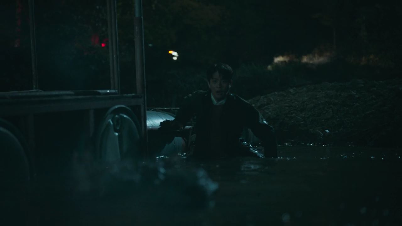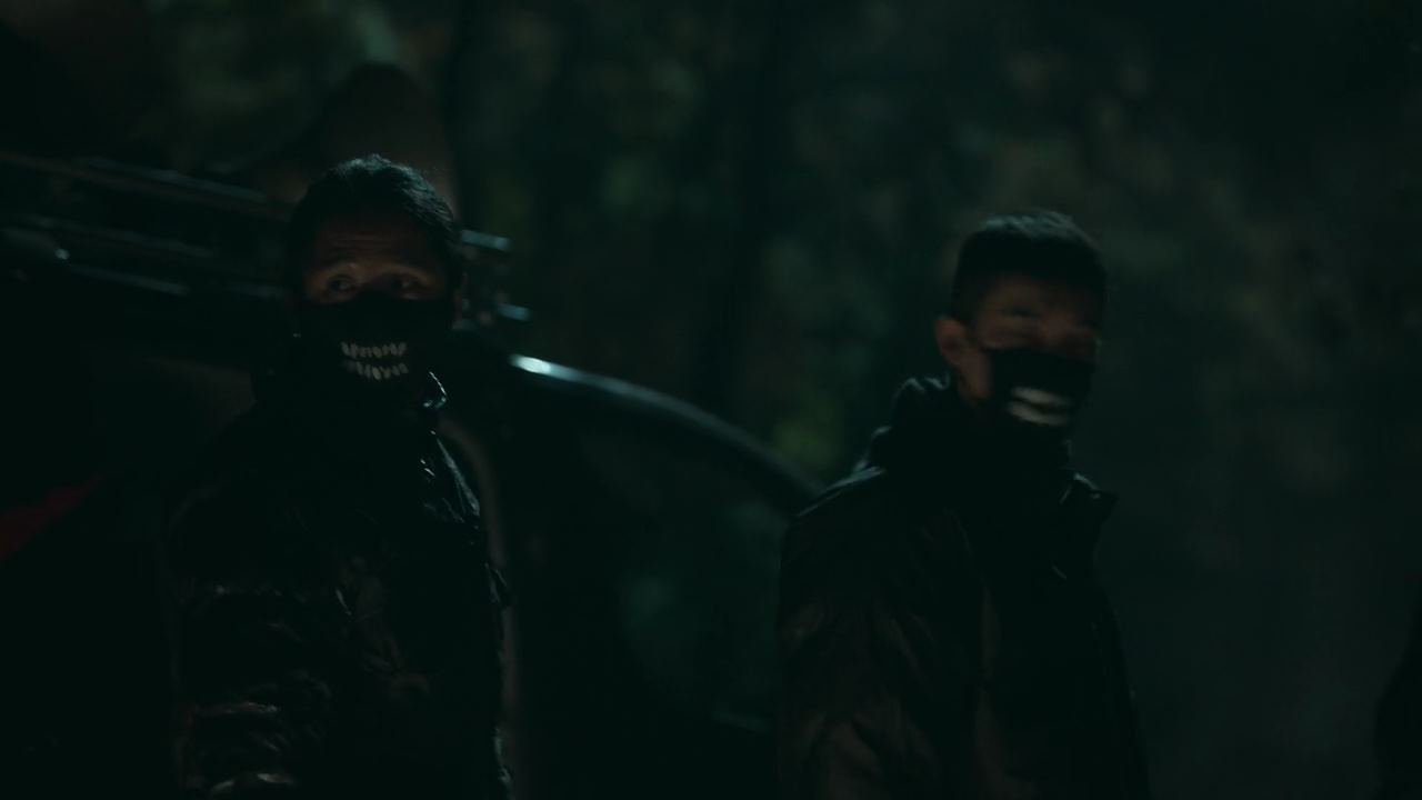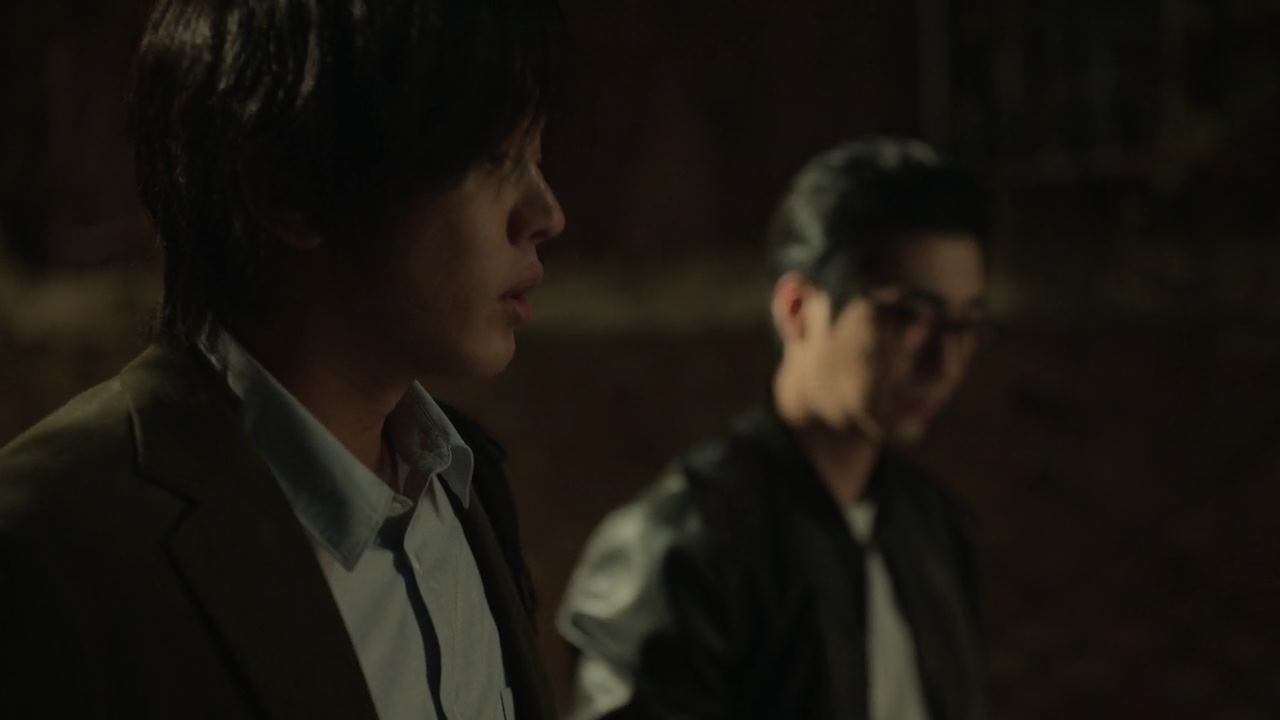 양평낚시터에 거의 다 도착한 배영재 차 바로 뒤따라오는 <전국화살촉연합 경기지부> 라고 써진 차에서 갑자기 사람이 내리더니 배영재한테 다가옵니다. 검은색 마스크와 검은색 몽둥이를 든 남자 둘이..이 지역을 지키고 있는 화살촉 멤버로서 여기 왜 왔는지 이유를 묻자..화살촉을 너무 싫어하는 배영재는..한숨을 푹푹 쉬면서..방송국 PD인데..프로그램 답사차원에서 왔다고 둘러말합니다. 오밤중에 답사를 오냐, 뭔 꿍꿍이냐 깐죽거리던 화살촉이..뒤에 브레이크 등이 하나 나갔던데..서울가면 바로 고치라고 말한뒤.. 자리를 뜨죠. 진절머리 치는 배영재는 다시 출발하고 낚시터에 도착해여기저기 강준원을 찾아다니다가.. 호수를 앞에 둔 경치 좋은 정자에 앉아 명상이라도 하고 있는 것 같은 강준원의 뒷모습을 발견하고..여기서 뭐하고 있냐고 다가가 얼굴을 보는데.. 평화로워 보이는 뒷모습과는 달리 두려움에 몸까지 덜덜 떨고 있죠.
