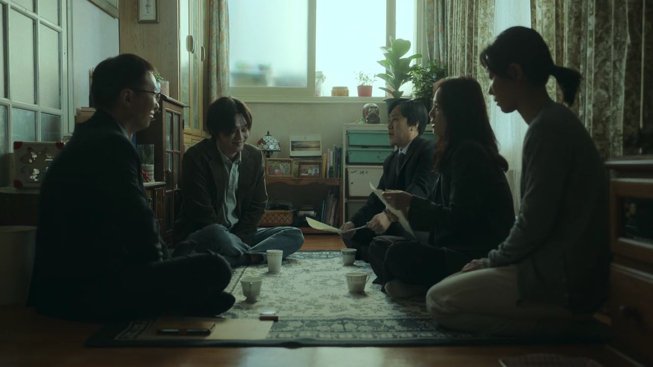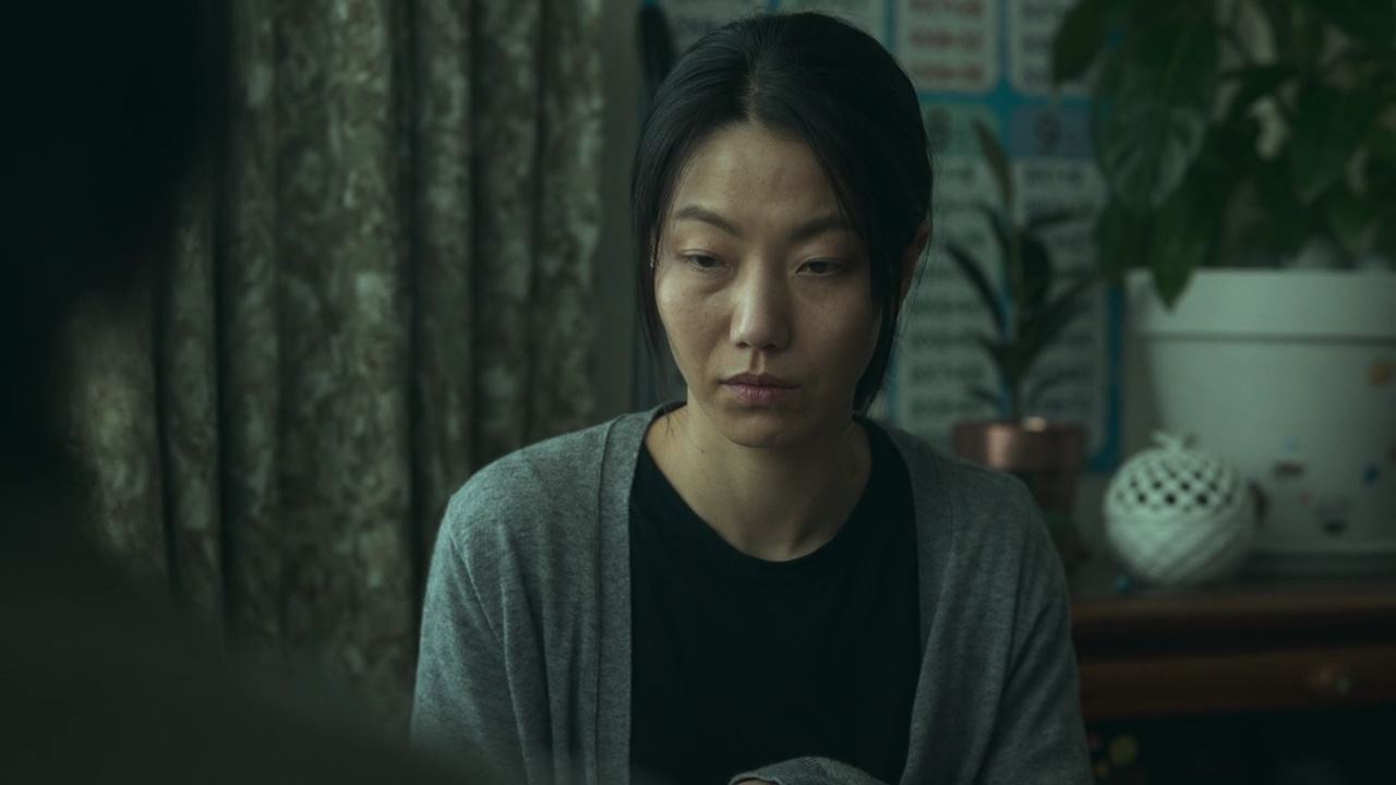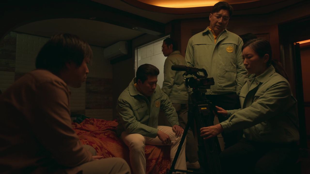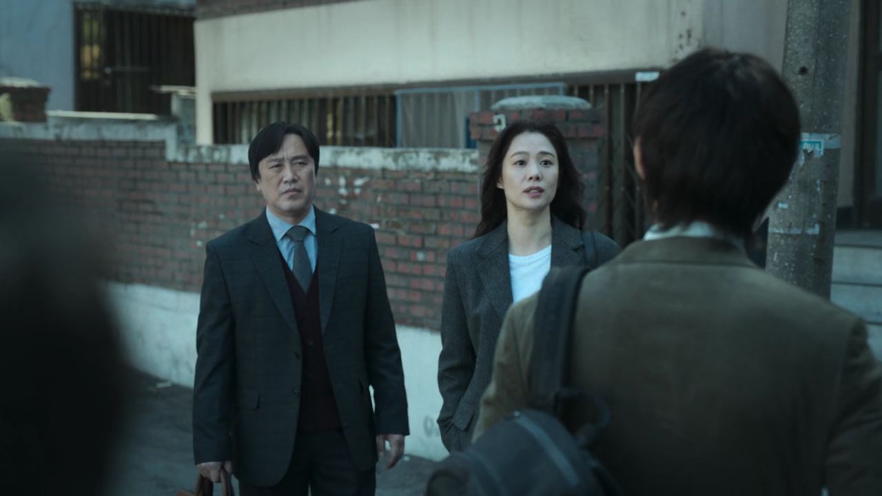 그 때. 방문이 벌컥 열리고.. 아들이 나와서 자기 엄마가 뭘 그렇게 잘못을 해서 지옥에 가냐고 정진수한테 버럭 큰소리를 치고 여동생은 울고 있자..박정자는 애들을 데리고 방으로 들어가지요. 아들을 대차게 혼내는 소리에 거실에 앉아있는 사람들도, 주방 식탁에 앉아있는 형사들도..불편한 표정을 짓고.. 몇 분이 지나..박정자는 방문을 열고 나와.. 문앞에서 무릎을 꿇고 앉아요. 그리고 정진수를 향해 ..자기 죄는..아무거나 붙여주고..우리 애들만 고생 안 하고 잘 살 수 있게 해달라며 울먹입니다. 그리고 변호사들 쪽을 향해..애들한테 아무 것도 못해주고 살았는데..어쩌면 이건 행운이고 기회라며..시연 이후에 우리 애들이 아무도 모르는 곳으로 가서 잘 살 수 있게 도와달라고 하지요.
