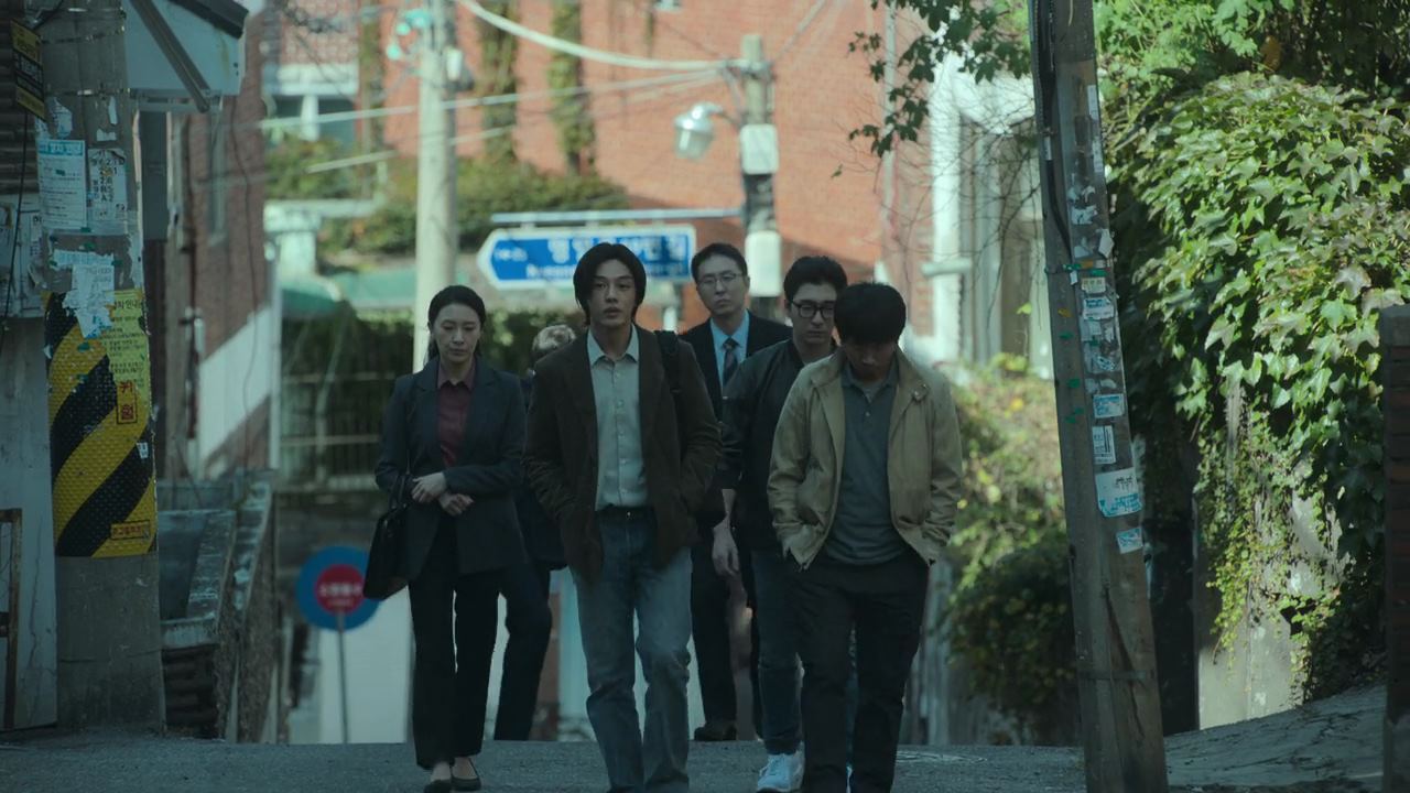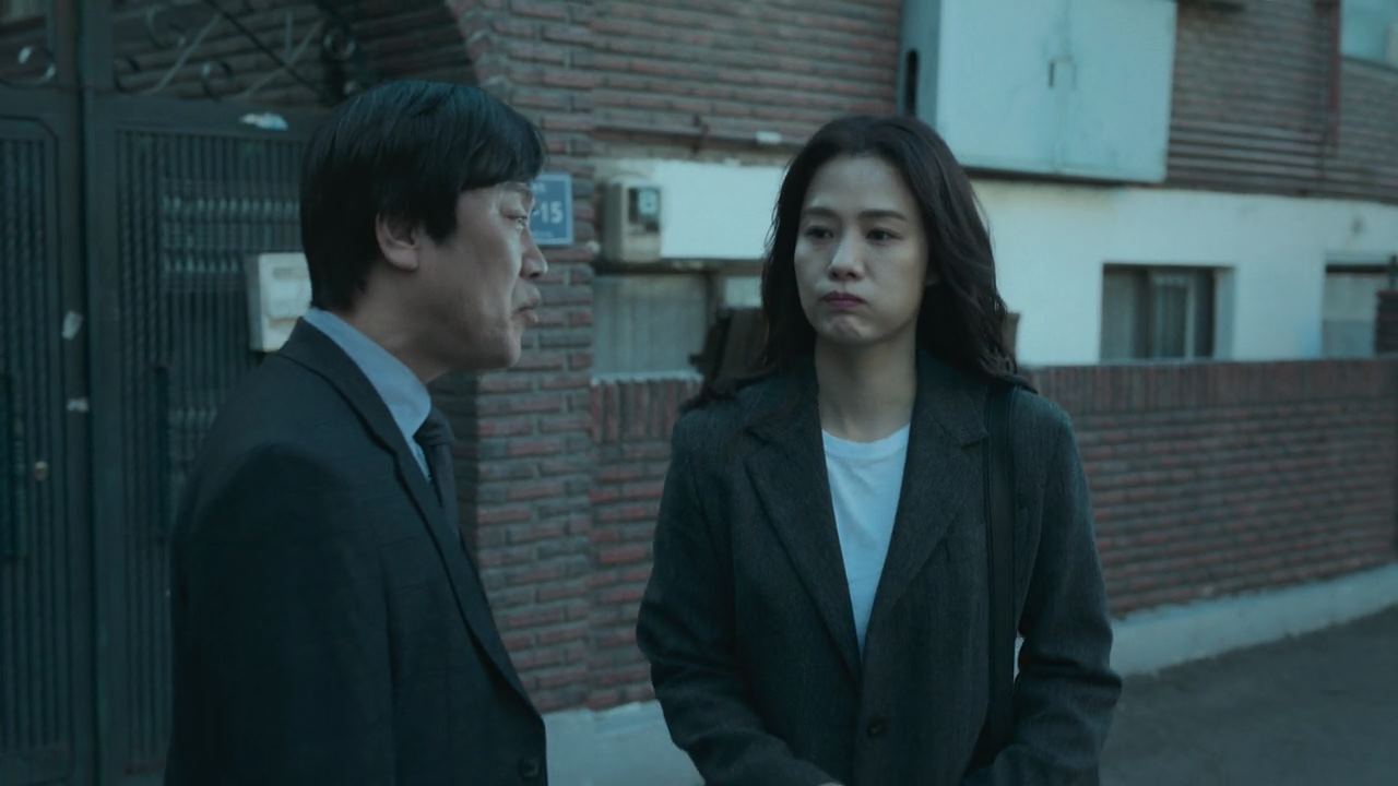 다음날..경찰서. 불에 탄 물질에 대한 감정 결과가 나왔는데.. 이 세상에 없는 물질이라고 나오자 형사들은 당황. 반장은 그게 그럼 대체 뭐냐고 소리를 고래고래 지르면서.. 뭐라고 보고를 하냐고 감정서를 형사들한테 던져버리구요. 그 때 진경훈 형사 핸드폰으로 민혜진 변호사한테 전화가 옵니다. 정진수 의장을 포함해서..새진리회 측 사람들이 박정자와의 계약을 맺기 위해 박정자의 집 쪽으로 향하고 있는데.. 진경훈 형사와 후배 홍은표 형사가 합류해요. 박정자 집으로 올라가는 길.. 30억이라는 큰 자금력에 놀랐다고 진경훈 형사가 말하자..저희 회원들 중에는 아주 많은 종류의 분들이 계신다는 정진수는.. 박정자 대문 앞에서 만난 민혜진 변호사와 정진수 의장은..퉁명스럽게 몇 마디 주고 받은 후..통성명도 없이 집안으로 들어가고요. ㅎ