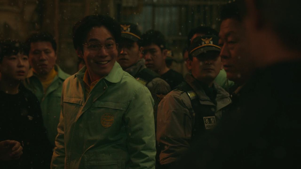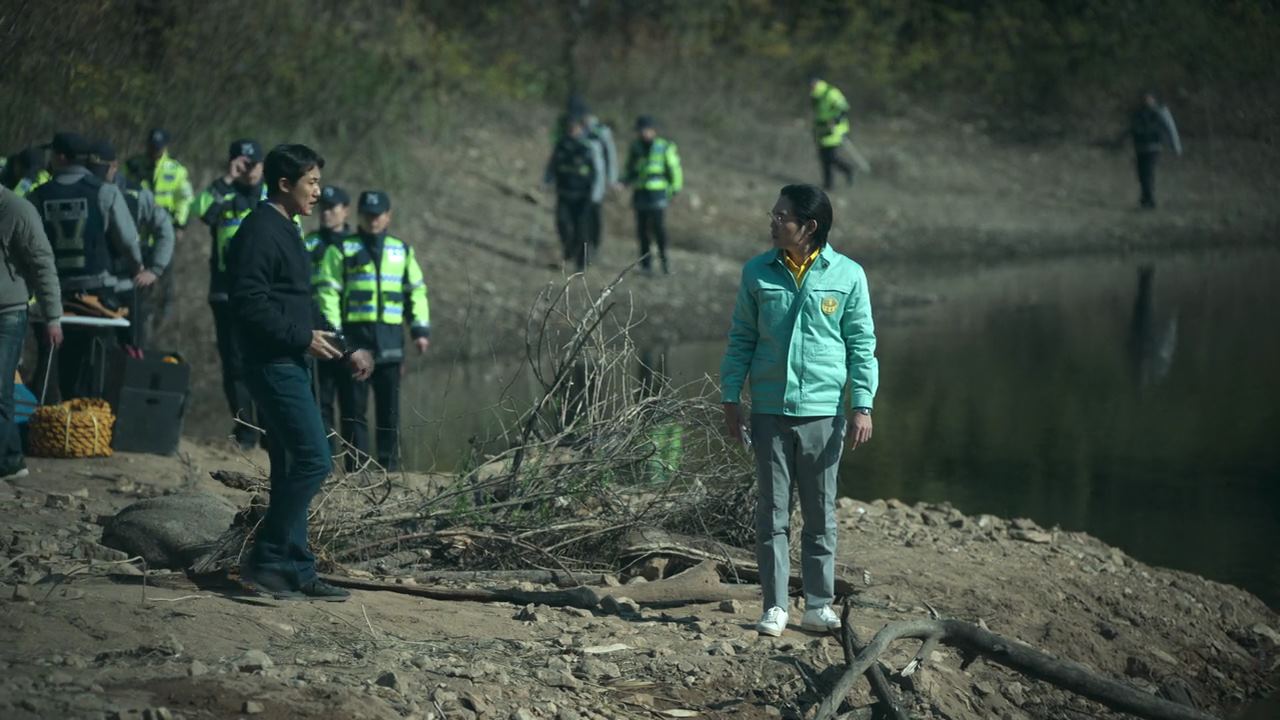 한편, 정진수의 생중계 인터뷰 방송에서 자기 딸 희정의 옷을 보고..화가난 진경훈 형사는 정진수를 찾아가지만 정진수 의장의 집 주변에는 새진리회 신도들이 깔려있구요..정진수를 찾으며 난동을 피우는 진경훈을 신도들은 에워싸서 두들겨 패고 있는데.. 진경훈 핸드폰으로 정진수한테 영상통화가 걸려옵니다. 자기를 신도들한테 보여주라는 정진수의 부탁으로 핸드폰을 들어 주변 신도들을 비추니..안쓰러운 표정으로 안부를 묻는 신도들한테..정진수는..자기는 잘 있으니 진경훈 형사를 자기가 있는 쪽으로 보내달라고 말하죠. 그렇게 진경훈은 신도들한테 받은 주소로 차를 몰고 가는데.. 산속 깊숙한 곳에 자리한 정진수가 예전에 다녔던 보육시설이죠.
