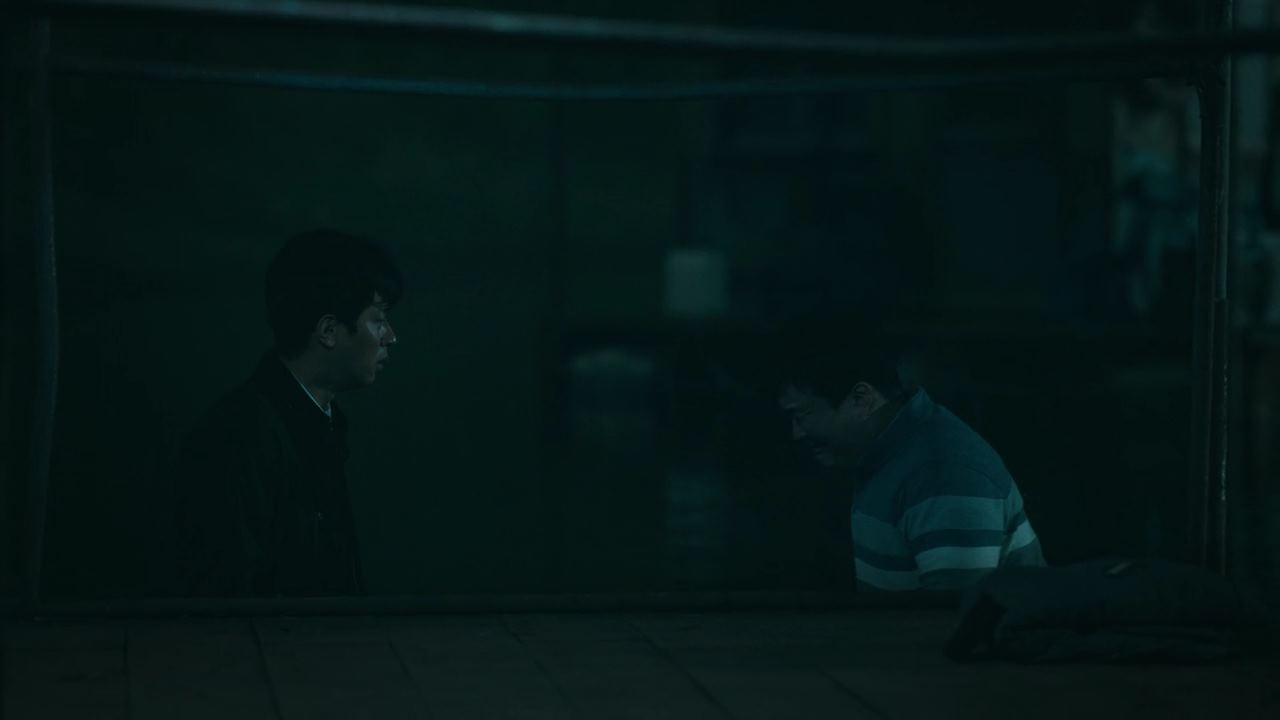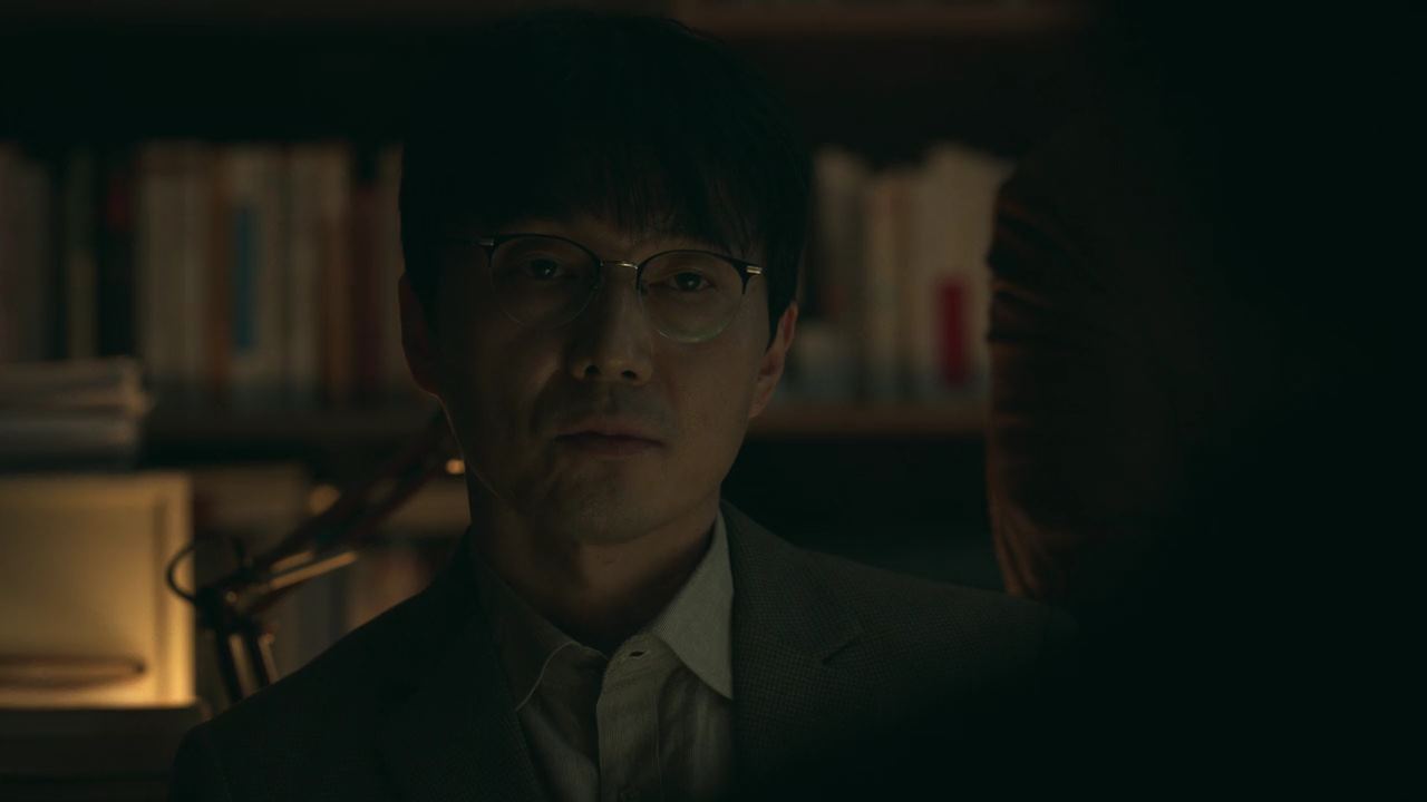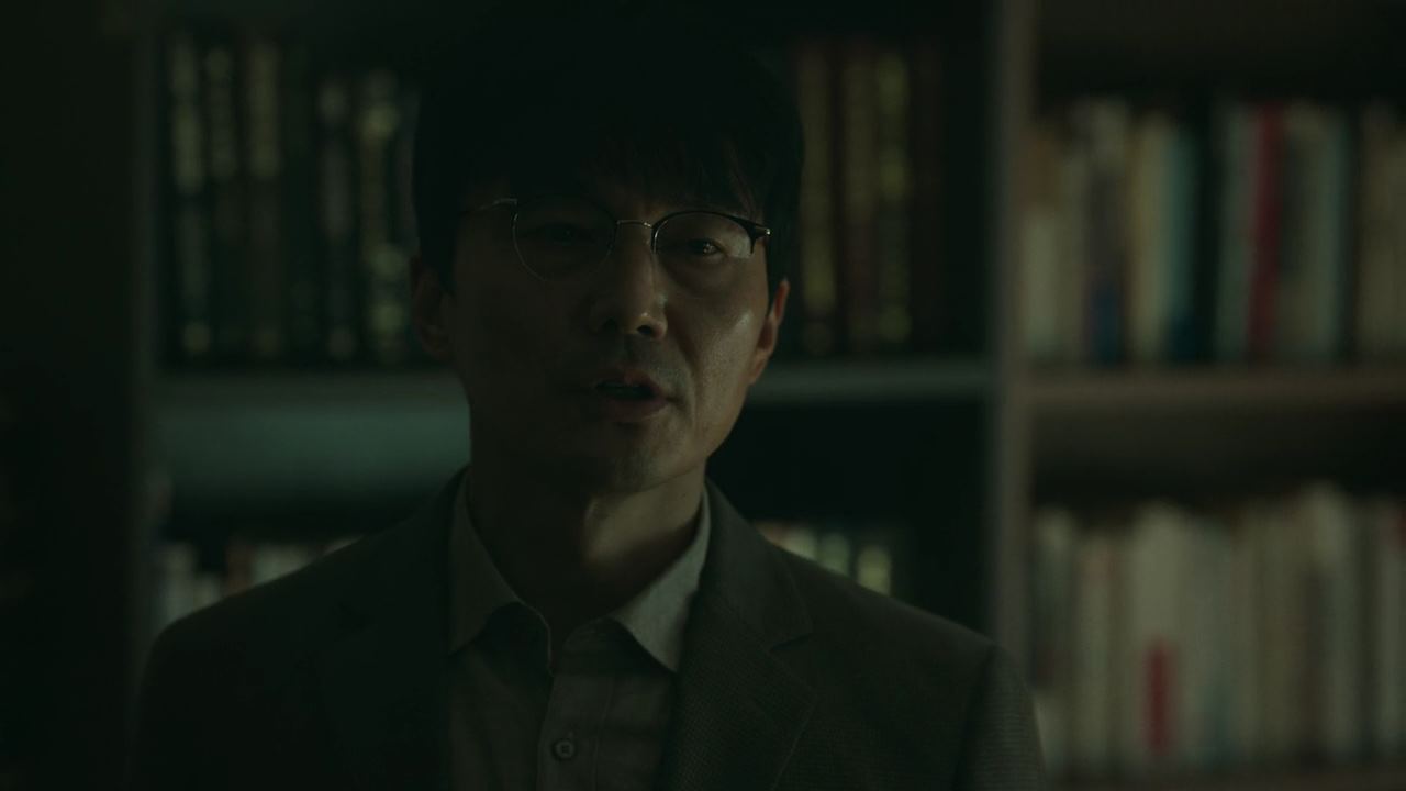 정진수는 진경훈과 함께 집으로 가면서 자신이 신의 의도를 알게 된 계기를 말해주는데요~. 보육원에서 자란 그는 사람들의 눈에 띄지 않고 죽기 위해 보육원에서 돈을 받고 독립하는 나이인 스무살까지 기다렸다가 티베트 고원으로 여행을 떠났다고 해요. 그리고 거기서 사자들이 시연을 하는 장면을 목격하게 됐고..그 후로 신의 흔적을 찾기 위해 10년을 헤매다가..이제야 어렴풋이..신은 인간이 더 정의롭기를 바란다는 ..신의 의도를 알게 됐다고 말합니다. 경훈은 죽지 않으려고 선하게 사는 것이 과연 정의라 할 수 있냐고 묻자 진수는 공포가 아니면 무엇이 인간이 참회할 수 있냐고 반박해요. 경훈은 그럼 그 신은 인간의 자율성을 믿지 않냐고 다시 묻고..이에 진수는 경훈의 아내가 살해당한 사건에 대해 이야기하면서.. 사람이 만든 법체계가 정의롭다고 생각하냐고 반문합니다.