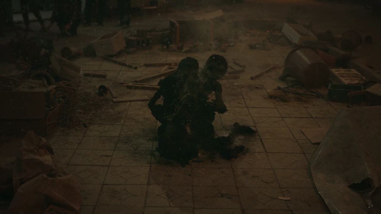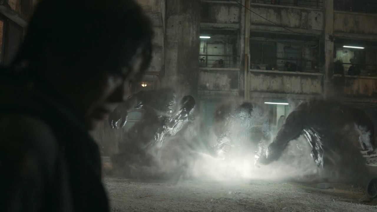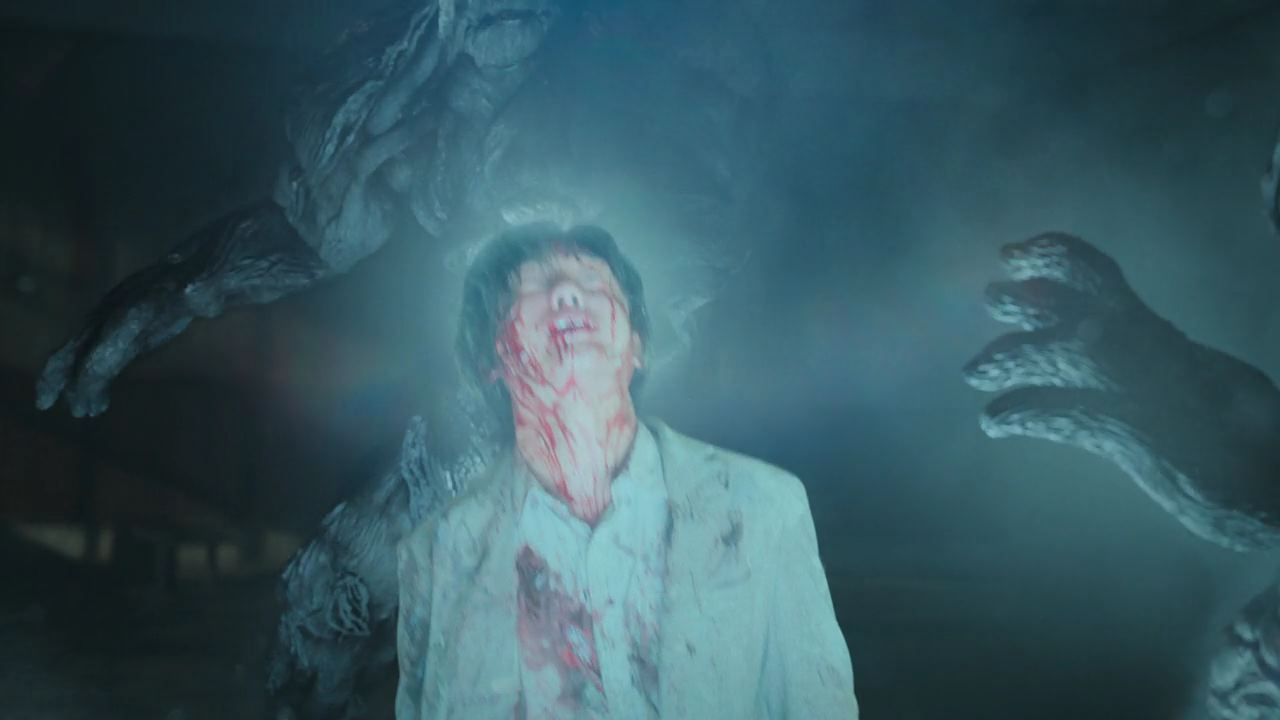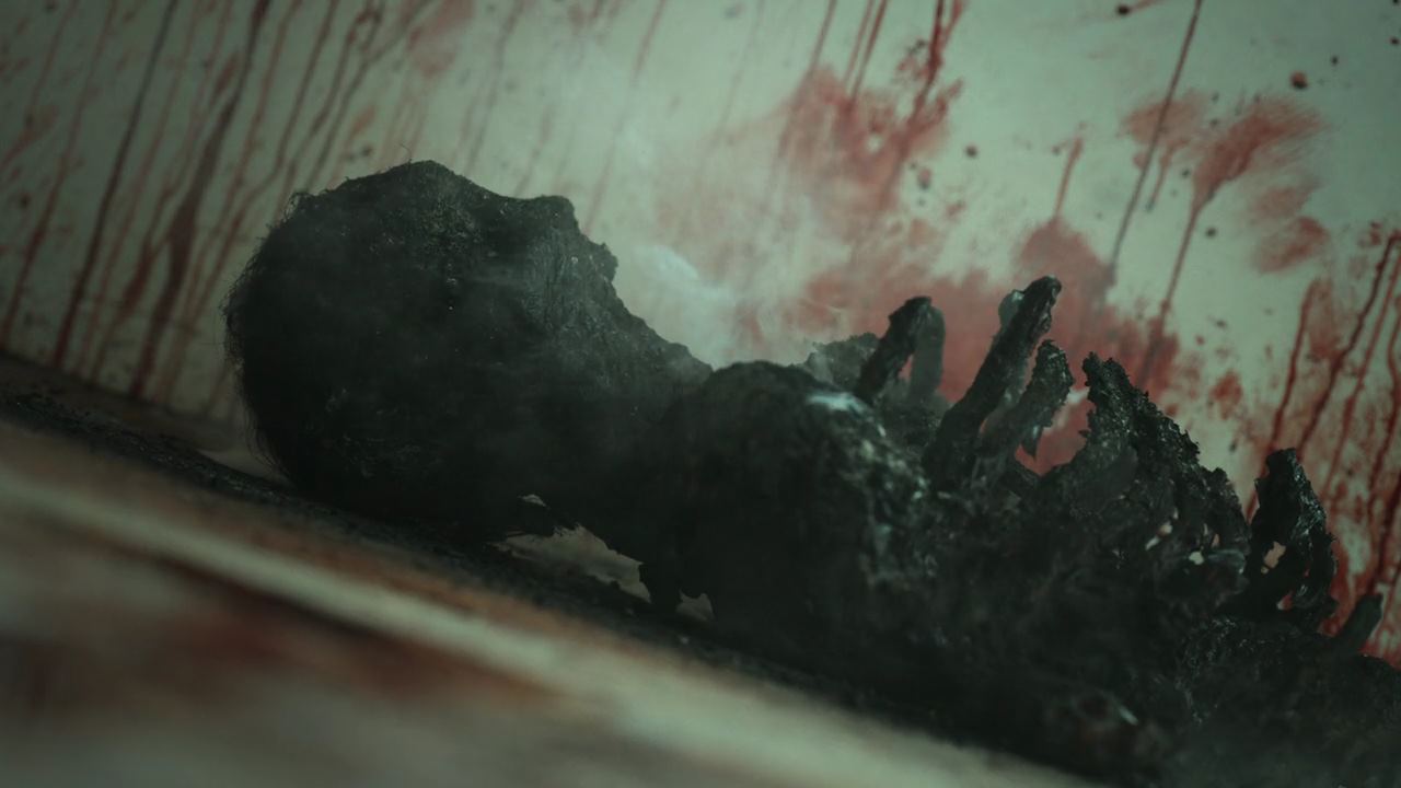 송소현의 말에 여기저기서 사람들이 문을 열고 나오고 다시 한 번 사람들이 보는 앞에서 아이가 곧 시연을 받는다며 꼭 봐달라고 송소연은 눈물로 호소하죠. 어떻게 아기가 시연을 받는거냐며 사람들은 의아해하고 영상으로 찍기 위해 휴대폰을 꺼내드는데.. 시연 시간이 되자 지옥의 사자들이 나타나고 아이를 안고 있는 송소현을 공격하기 시작합니다. 배영재와 민혜진은 사자들을 막아 보려고 하지만 소용이 없고..안되겠다 싶은 배영재는 아이를 끝까지 지키기 위해 송소현과 아이를 끌어안지만 사자들은 그 상태로 강한 빛을 내뿜고.. 결국 배영재와 송소현은 재가 돼버려요. 시연을 보고 있는 사람들의 탄식이 여기저기서 들리는 가운데.. 아이의 울음소리가 들리고..민혜진이 다가가 보면..놀랍게도 송소현이 품 안에 품고 있었던 아기는 다친 데 하나 없이..살아있어요.