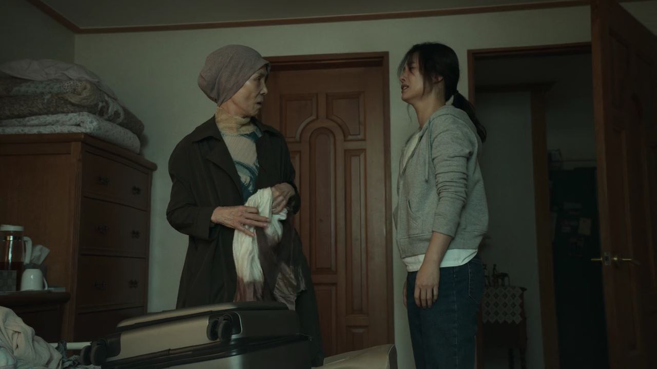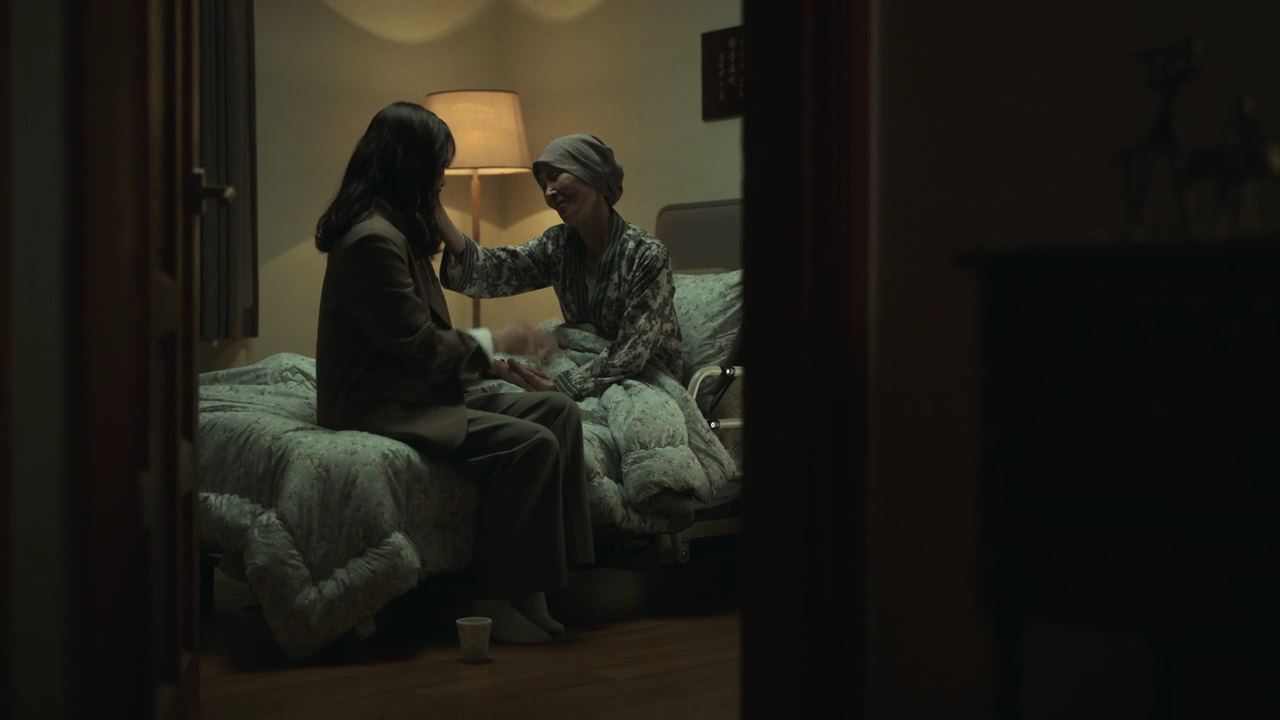 민혜진 변호사는 암진단을 받은 엄마를 집에서 돌봐드리고 있구요. 그의 엄마는..집에서 담배도 피우며 이왕 죽을거 편하게 좀 있자고 초긍적적인 마인드이구요. ㅎ 박정자네 집에서는.. 애들은 다 자고 있고. 박정자 혼자 숨을 죽이고 울음을 삼키고 있고.. 정진수 의장은 본인 집에서.. 박정자가 천사한테 고지를 받을 때 영상을 멍한 표정으로 보고 있어요.