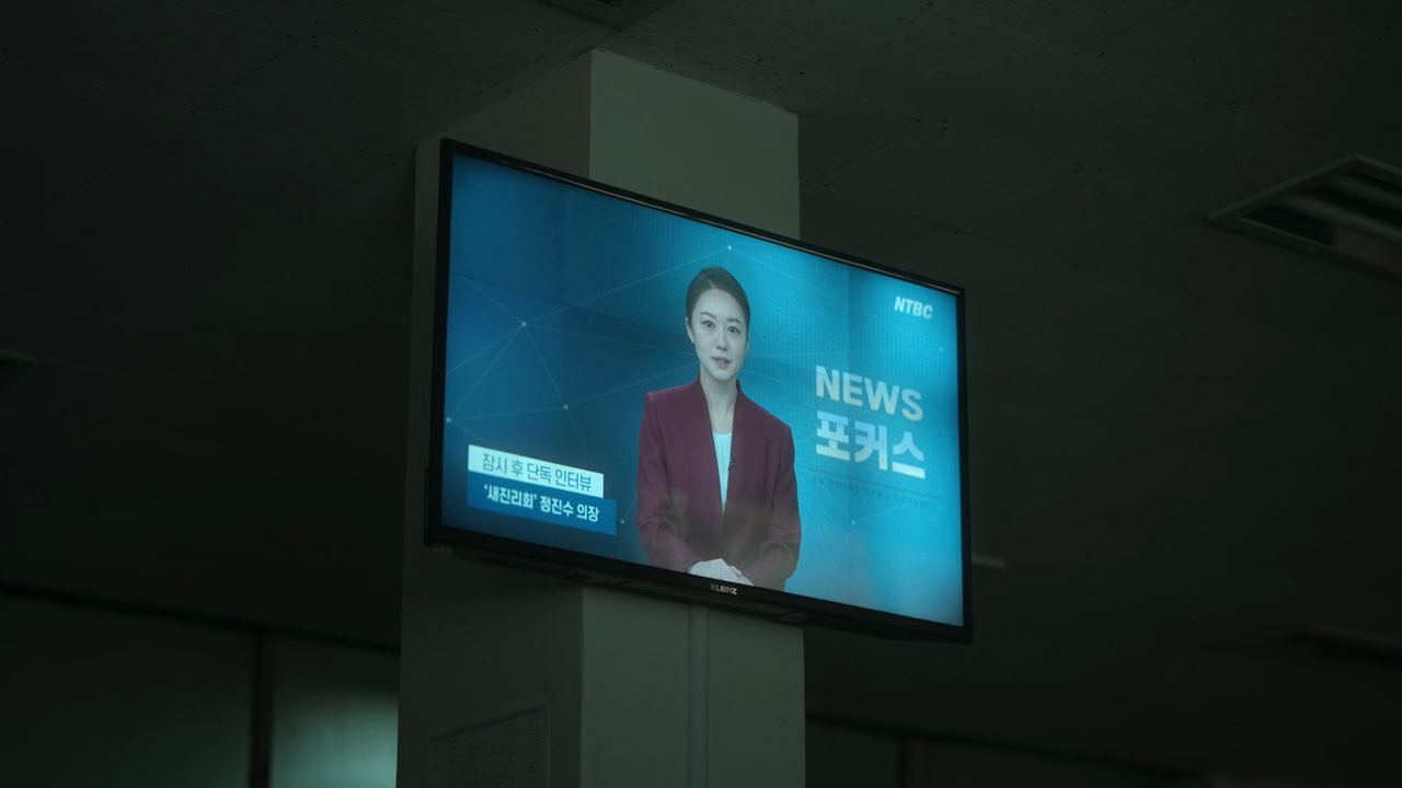아침이 돼 경찰서에 출근했더니..역시 경찰서 사무실도 휑~하고. TV를 틀어보니.. 박정자의 시연 사건으로 모든 채널들은 떠들썩합니다. 신의 존재가 입증되었다고 말하는 새진리회 의장 정진수가 나와 신의 의도를 설명하는 모습을 한 방송국과 생중계로 인터뷰를 하고 있는 것을 보는데..정진수는 생방송 도중 방 한쪽에 걸어져 있는 진경훈 형사의 딸 희정의 옷을 의도적으로 보이게 카메라 각도를 맞춰놨죠.