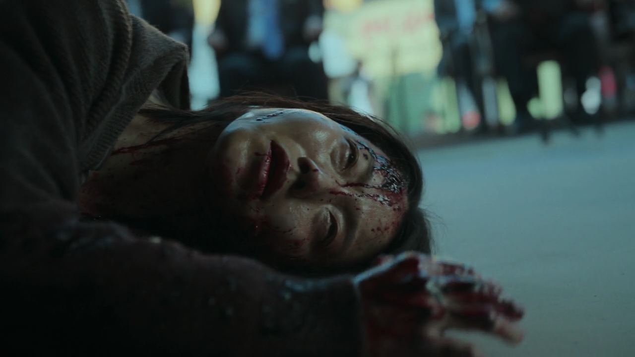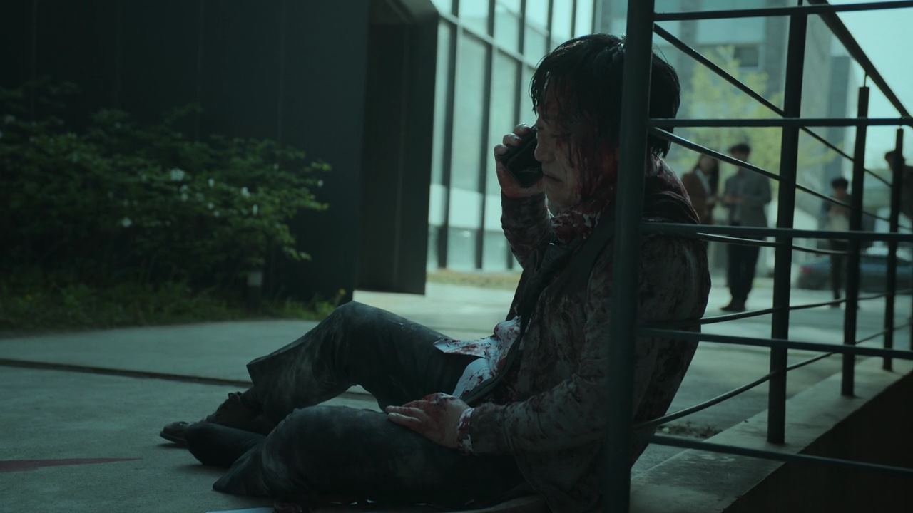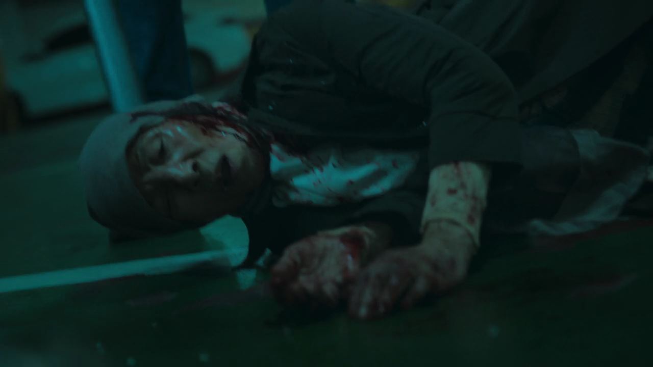 자세히 읽어 볼 시간이 없는 민혜진은 엄마의 집을 싸서 같이 차를 타고 공항으로 가는데..선배 변호사가 전화를 받지 않아 걱정이 돼서 변호사 사무실로 향하지만.. 사무실은 이미 화살촉의 습격을 받아 아수라장이 됐고..그 때 전화가 와 받아보면..이미 화살촉한테 발각돼 죽도록 두들겨 맞은 선배 변호사가..빨리 도망가라고 울부짖고 있죠. 선배 변호사는 그렇게 피를 흘리며 쓰러지고..그런 모습을 보고도 사람들은 수군덕대며 그냥 지나치구요.