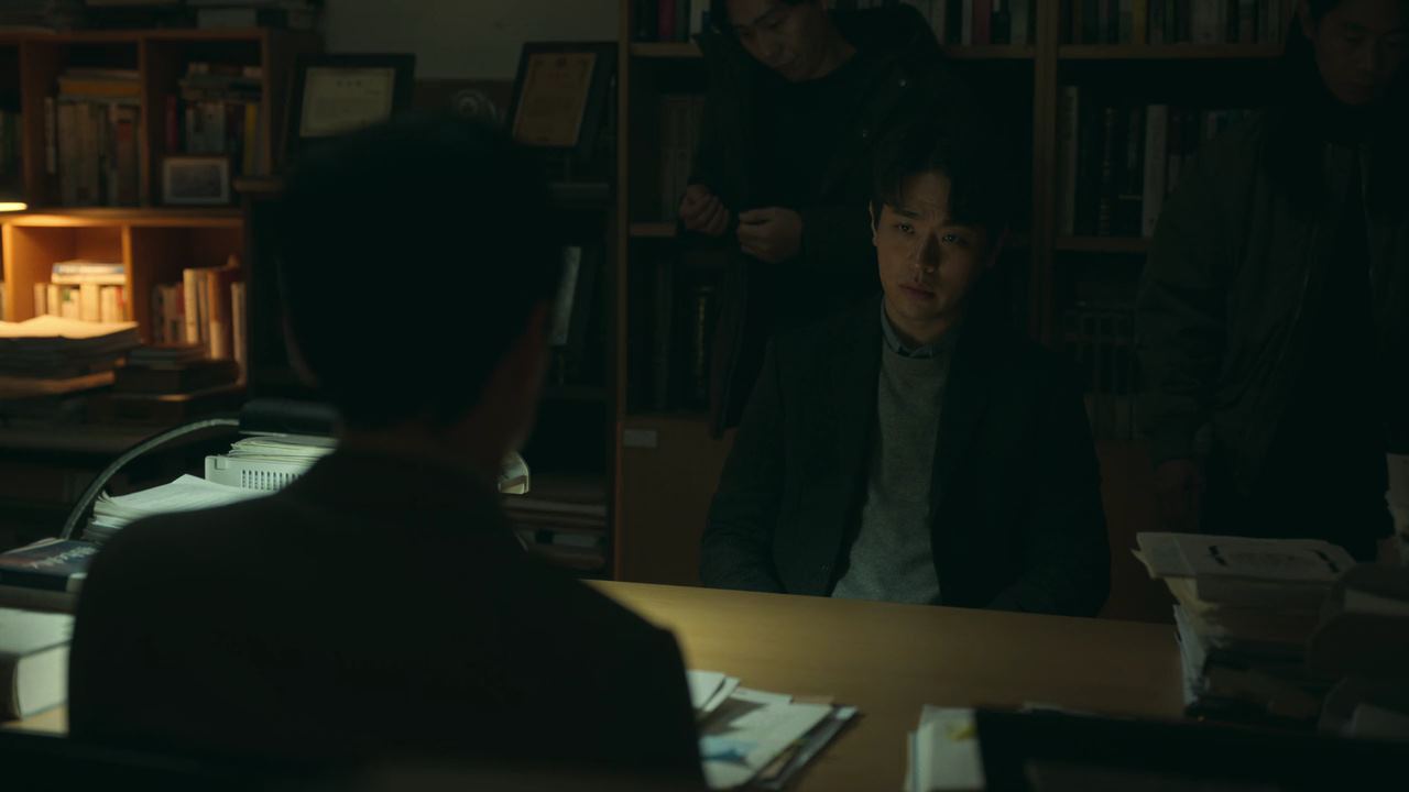 공형준 교수가 한국대학교 사회학과 교수라는 것을 알아낸 배영재는 한국대학교를 찾아가고.. 공형준 교수 연구실 앞에 노크를 하고 기다리고 있는데.. 자신을 따라온 듯한 남자 둘이 다가오더니..연구실 문이 열림과 동시에 함께 안으로 밀려들어갑니다. 이들은 다 소도 조직원들이구요.. 책상에 앉아 서류 정리가 끝난 공형준이 일어나 배영재한테 다가오면서.. 어제 일은 다 잊으랬더니..무슨 볼 일이 있어서 왔냐고 묻죠.