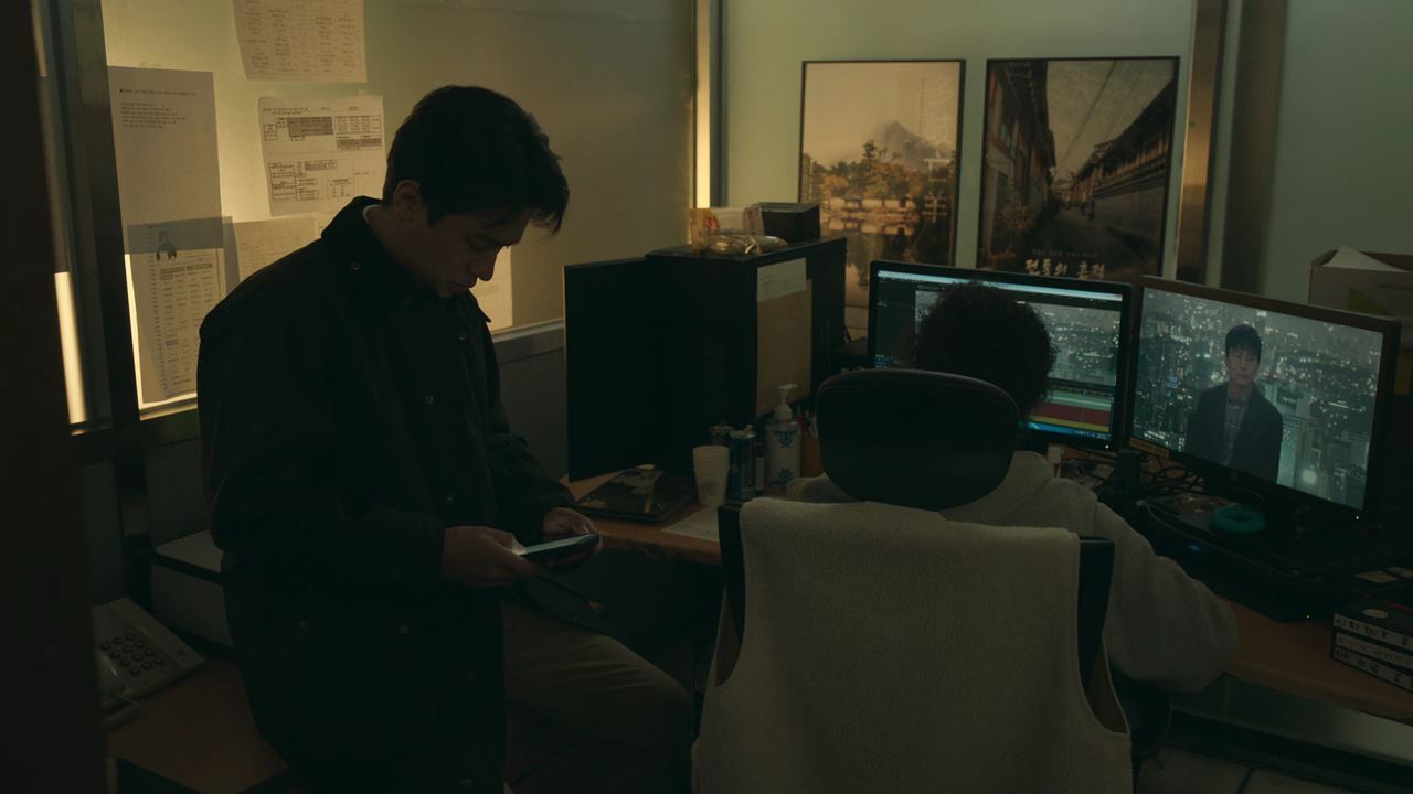 혼자서 편집실에 간 배영재는 일을 하고 있다가 편집실 직원이 틀어 놓은 TV 속..인터뷰를 하고 있는 공현준 교수라는 사람이 하는 말을 잠깐 기귀울여 듣구요..다시 사무실로 돌아와서 우연히 강준원 PD 책상 위 무슨 종이를 가져가려다가 ‘소도 일수’ 라고 적혀진 명함 한 장을 보는데..뒤에는 ‘양평 낚시터’와 그 주소가 적혀 있죠. 대수롭지 않게 여긴 배영재는..몇 시간에 걸쳐 편집을 다 끝내고 출산한 아내 송소현을 보기 위해 병원으로 향하는데 강준원의 와이프로부터 전화를 받습니다. 그의 와이프가 하는 말이.. 남편과 연락되지 않고 며칠 전부터 사채업자들한테 전화가 막 왔었다고요. 배영재는 순간..강준원의 책상에서 ‘소도 일수’ 명함에서 적혀있던 양평 낚시터를 떠올리고는 병원으로 가려던 차의 핸들을 돌리죠.