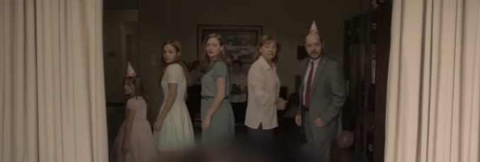 금방 열릴 것 같은 집 안의 한 방문을 5초간을 응시하고 있다가 벌컥 문이 열리더니 어린 소녀들로 보이는 여자애 둘이 나옵니다. 거실로 가면 이 둘을 기다리고 있던 나머지 식구들은..생일케익을 들고 노래를 부르기 시작합니다. 중년 남자가 아내와 두 딸이 있는데 큰 딸은 다시 딸, 아들, 딸을 낳은 상태, 여기서 남자는 아빠와 손자 뿐. 다 여자. 같이 사는 식구는 7명. 처음에 방에서 나온 여자애 둘은 작은딸이 큰손녀의 손목을 잡고 방에서 나온 것. 이 날은..큰손녀의 11번째 생일이었고.. 생일 축하 노래를 부르고 사진찍으면서 즐거워하는 식구들과는 달리 작은딸과 큰손녀는 무표정으로 한 번씩 서로를 쳐다보고. 케이크의 불을 끄고 아빠와 사진을 찍은 후 음악에 맞게 춤을 추는 아빠, 작은딸, 큰손녀, 작은손녀, 손자 (리듬이.. 벙어리 바이올린 ㅋ) 여전히 큰손녀는 본인생일인데도 어두운 표정이죠. 주방에선 큰딸과 엄마가 케익을 먹기 좋은 크기로 잘라 접시에 담고 있는데. 갑자기 큰딸이 말하죠. "엄마, 나 임신했어요~!!" ..그걸 들은 엄마는.. 확실하냐고 한마디 물어 볼 뿐..무표정으로 딸 얼굴을 보더니 별 대수롭지 않은 듯 그대로 하던일을 하고..