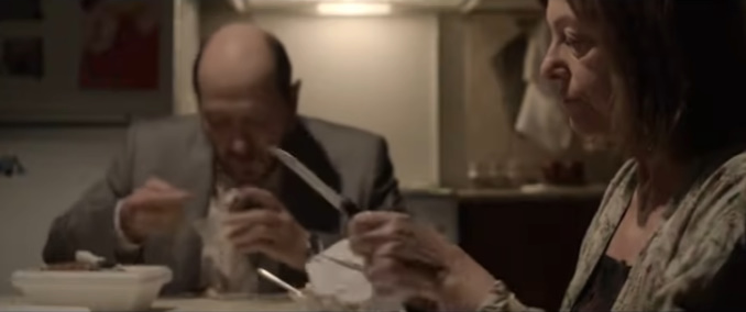 화면이 바뀌고 남녀 복지사들 앞에서 설명을 듣고 있는 아빠와 큰딸. 딸이 자살을 해서 넋이 나가 있는 큰딸과는 달리 복지사들 말에 따박따박 대답도 잘하는 아빠는 조만간 조사를 한다는 복지사들한테 알았다고 하며 큰딸을 데리고 집으로 가죠. 적막이 흐르는 주방 테이블에 다들 검은색 옷차림의 식구들이 어두운 표정으로 앉아 있는데..큰딸은 자기 앞에 놓인 접시를 내동댕이 쳐버리고 무섭게 아빠를 노려보죠. 애가 죽고 있을 때 식구라는 사람들이 뭐하고 있었냐고 아빠는 한 사람씩 쳐다보며 뭐라고 하고 작은딸은 흐느껴 울어요. 엄마가 일어나 저녁인 샌드위치 몇 개를 챙겨서 손자, 손녀 둘을 데리고 가고 작은딸도 일어나 가버리니. 큰딸과 아빠 둘 만 남게 되는데...아까 복지사들 앞에서 자기는 한 마디도 못하고 있는데 도와주지 않고 왜 아빠 말만 했냐고 큰딸은 울먹여요. 그런 큰딸한테 아빠는 알약 하나와 물 한 잔을 건네줍니다.