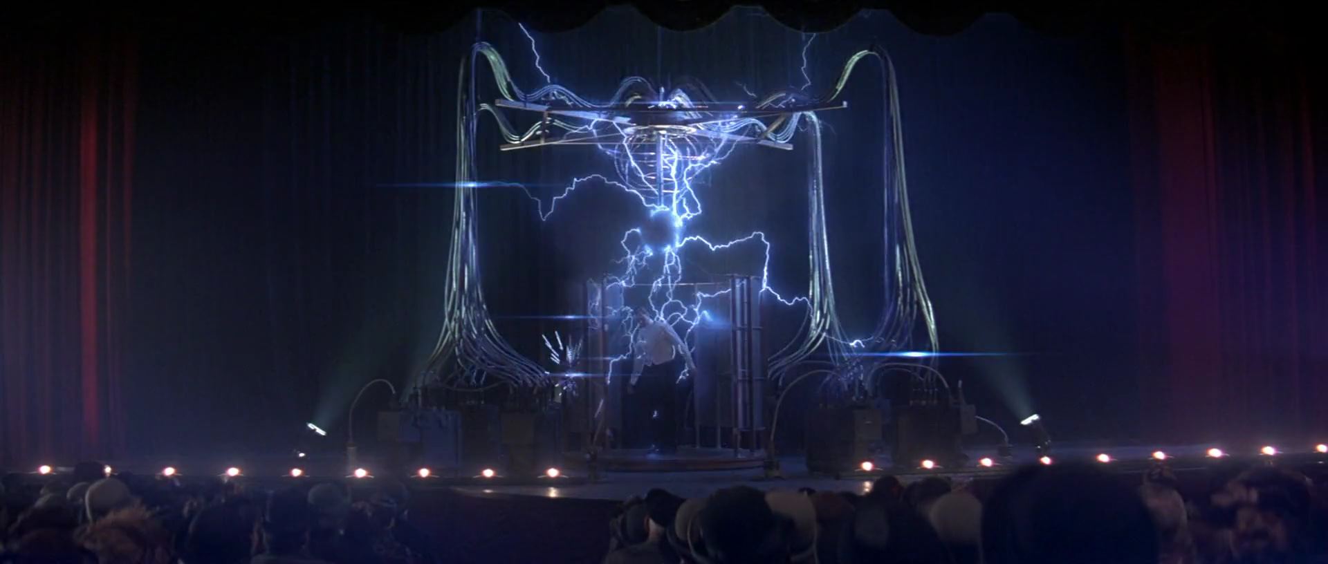 얼마후 테슬라를 찾아갔지만 아무도 없이 휑한 건물은 여기저기 불타고 있지요. 절망스러운 앤지어를 호텔직원은 어떤 장소로 안내하고..앤지어는 그곳에서 '니콜라 테슬라' 가 그동안 연구했던 결과물을 보게됩니다. 기계에 붙여진 편지를 천천히 뜯어서 읽어보는 앤지어가..쪽지내용에 심각한 표정을 하고서는 잠시 생각에 빠집니다. 이쯤해서 남편한테 지친 보든의 아내 '사라' 가 자살을 하는 일이 일어나죠. 이후 앤지어는 영국으로 돌아와서 조력자이자 엔지니어인 카터와 런던 최고의 극장 관계자 '아크만' 이라는 사람을 초대해서 그들에게 자신의 마술을 먼저 시연해 보이고 극장 대여를 하게 됩니다. 앤지어는 테슬라가 만든 이 장치를 이용해서 사람들한테 완벽한 순간이동을 보여주며 마술계의 스타로 떠오르게 되죠.