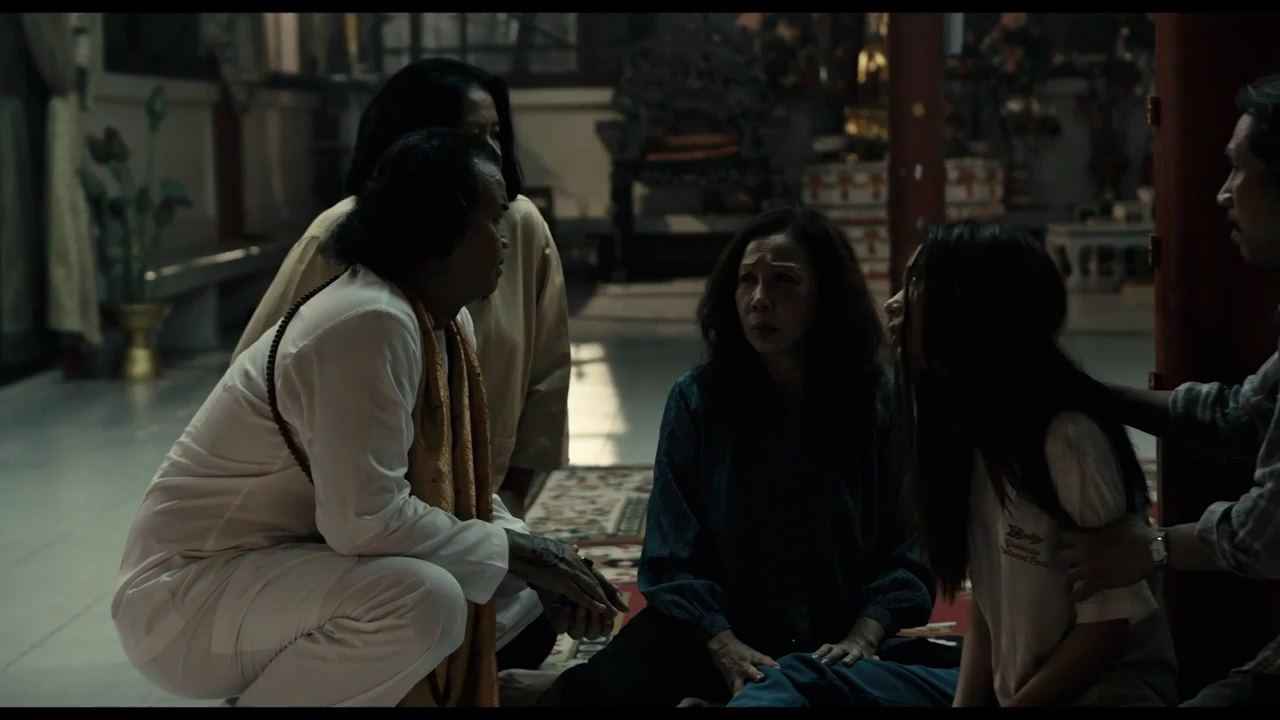 님은 노이의 남편인 아싼티야 위롯의 장례식에 참석해 오랜만에 가족들의 얼굴을 보게 되죠. 아싼티야 가문의 남자들이 대대로 불행한 최후를 맞았다는 이야기를 님은 촬영팀에게 해 주는데요. 노이의 시아버지는 보험금을 타내기 위해 공장에 불을 질렀지만 일이 잘 풀리지 않아 자살했고, 아들인 맥은 오토바이 사고로 죽고, 이제 남편까지 암으로 죽었다며 노이를 불쌍히 여깁니다~!! 그렇게 장례식 행사는 이어지는데.. 갑자기 언니 노이의 딸인 조카 밍이 술을 많이 먹고 고래고래 소리지는 것을 님이 보게 되구요. 님은 그런 밍의 상태가 어째 묘하다고 생각합니다. 밍이 장례식장 근처에 사는 봉사 할머니와 마주 보며 멍 때리거나, 이상하게 몸을 떠는 것을 본 님은 언니 노이에게 밍의 상태에 대해 물어보지만 노이는 대수롭지 않게 여기죠.