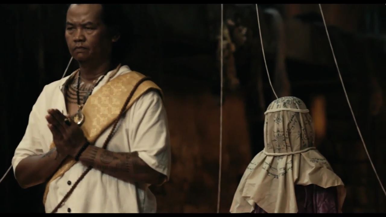 그리고 님이 사라졌던 밍을 찾아낸 곳은 아싼티야가 사람 중 하나가 보험금을 타내기 위해 불을 질렀다가 쫄딱 망해버린 폐공장 건물 안이었습니다. 구조되어 집으로 돌아온 밍은 이제 사람 같지 않구요..얼굴색이 검게되고 밥을 먹지 않으며, 눈의 초점이 풀려 있는 데다 가족들이 보는 앞에서 삼촌을 덮치려고도 합니다. 밍은 자신에게 퇴마 의식을 시도하는 이모인 님에게..노이가 네게 자기 대신 신내림을 받게 하려고 온갖 짓을 한 것을 알고 있느냐, 네 안에 있는 게 정말 바얀신 같으냐" 같은 말을 하고.. 노이는 동생 님에게 미안해 하지만, 님은 애써 마음을 가다듬죠. 자신의 힘 만으로 부족하다 느낀 님은 퇴마사인 싼티에게 밍을 데려갑니다. 싼티는 현재 밍 안에 온갖 악령들이 빙의되어 있다고 말해주면서.. 노이의 시댁쪽.. 아싼티야의 조상 중 하나가 학살을 벌였으며, 그 피해자 중 하나가 아싼티야 가문에 저주를 내린 것이라는 이야기도 해 줍니다. 밍이 폐공장에서 지내는 동안 짐승, 벌레, 나무의 혼까지 모두 밍 안에 들어간 것이죠.
