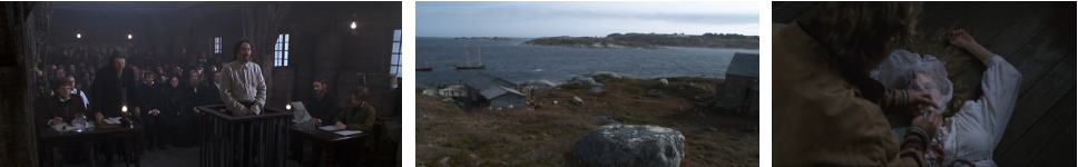다시 100년 전.. 법정. 법의관으로 보이는 사람이 피해자들 상태를 설명하면서 사건이 일어났던 상황을 추측하고 있고. 흉기는 꽤 묵직한 도끼였을 것이라고 합니다. 검사가 일어나서.. 그날 밤.. 집에 여자들만 남아있다는 것을 안 사람은.. 마을 어떤 남자이름을 대면서..그 사람하고 루이스밖에 없다고 해요. 그러면서 마렌한테.. 언제 미국으로 건너왔냐고 물어요. 내내 힘없이 앉아있던 마렌은.. 5년 전에 어부인 남편 존과 함께 기회의 땅이라고 하는 미국으로 왔다고 하면서..그 때를 회상합니다. 나이차이가 꽤 많아 보이는 남편 존과 마렌이 배를 타고 미국으로 와.. 신앙심에 매달려 성실하게 하루하루를 살지만..마렌은 남편한테 그저 같은 집에서 살고 있는 동거인 이상의 감정은 없었어요. 아내와는 달리 찐사랑인 남편 존은 아내를 위해 어느 날 강아지를 한 마리 어디서 구해 와 친구하라고 하며.. 고향에서 편지도 왔다고 건네주는데.. 아버지가 돌아가셨다는 내용과 언니(살해 피해자 중 한 명)가 미국으로 온다는 내용이었어요. 침대도 없고 집도 좁으니 안되겠다고 마렌이 말하자.. 배를 사려고 모아 둔 돈이 있으니 언니 오라고 하라며 자상한 미소를 보내는 남편 존 ㅎ