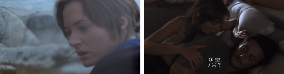 서로 웃으면서 이야기도 하고 요트 끄트머리에 앉아 갈매기한테 쿠키도 던져주고.. 사진도 찍는 등 재밌는 시간을 보내면서 섬으로 향하고.. 섬에 거의 다 와서 사진작가 진이 나레이션으로 이런 말을 합니다. " 그땐 우리에게 고작 17시간이 남았다는 걸 몰랐다.. 12시간..아니..3시간? " ... 섬에 먼저 내린 진은 여기저기 사진을 찍고.. 시동생 여친인 애덜라인이 사건이 기록된 책을 들고 "두 여자는 목이 졸리고 도끼로 찍힌 채 부엌에서 발견됐다..피해자 중 한 명인 아넷은 흰 망사천으로 덮인 채 발견이 됐는데..마치 살인범이 차 마시는 동안 안 보려고 했던 것처럼 말이다.." 라고..읽고선 신났다는 듯 웃어대죠. 나머지 세 명이 .. 100년 전 사건에 대해 장난식으로 얘기를 하고 있는 사이 진은 사진을 찍으며 진지하게 사건 현장에 대해서 상상을 하고 있죠. 진의 남편 토마스가.. 바위에 앉아 일렁이는 파도를 바라보고 있자.. 동생이 다가 와서.. 애덜라인이 형의 시를 듣고 싶어 한다며 우리는 비평가가 아니니깐 편하게 생각해 주라고 하자.. 토마스가 애덜라인을 보니.. 시 이상의 관심을 담은 요염한 미소를 보내고 있습니다. ㅎ 그들이 그러는 사이 진은.. 100년 전 사건때 생존자이자 목격자 마렌이 범인으로 부터 피해 도망쳤다는 동굴을 들어가서 마렌의 심정이 되어보죠.