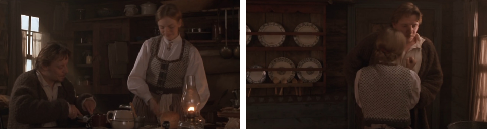 시간이 좀 지나서.. 밖에서 물을 길어오다가 아넷이 아무데나 둔 의자에 걸려 넘어지고 길어온 물이 다 쏟아져 버리자 아넷이 미안하다고 닦으려는데.. 자기가 할테니.. 집에서 하숙하는 남자한테 가서 책을 좀 읽어주라고 하죠. ㅎㅎ 자기더러 외간남자 방에서 책을 읽어주라는거냐며 정색하는 아넷한테.. 마렌은 그 사람은 잘 못 걸어서 그 사람 방으로 가서 읽어줘야 한다며 책은 현관 옆 책장에 있다고 웃어보이죠. 책을 들고 천천히 다락방으로 올라가는 아넷...얼마후 비명소리가 짧게 들리더니 머리는 산발인 채 풀어진 상의 블라우스를 간신히 잡고서 아넷이 뛰쳐 내려 와 기절해버립니다. 기절한 아넷을 들고 침대에 눕힌 후...기절해서 누워있는 아넷 얼굴을 한참을 보더니...손으로 천천히 쓱 쓰다듬어 보죠. 아넷이 정신을 차리자.. 이반한테 이 사실을 말하면 루이스를 죽이려고 할거니 말을 안하는게 좋을 것 같다고 마렌은 말하죠. 그러면서 남편 존한테 루이스가 어떤 물건을 훔쳤다고 얘기를 할 것이고 그러면 루이스는 당장 떠날거라고 해요. 다음 날 예상대로 존은 루이스를 내쫓고 영문도 모른 채 쫓겨나는 루이스는 절뚝거리며 빨래를 널고 있는 아넷과 마렌 옆을 째리면서 지나갑니다.