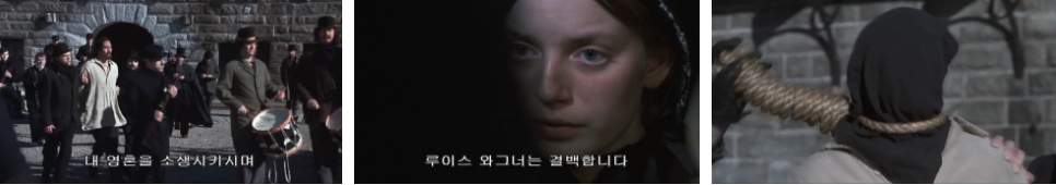 루이스 와그너가 처형되는 날. 무거운 표정으로 마렌은 검사를 찾아갑니다. 오래간만이라며 어쩐 일이냐고 묻는 검사한테 살인사건에 대해 진술하러 왔다고 마렌은 말합니다. 같은시간...구경하러 온 사람들로 아우성인 처형장 .. 경찰들과 함께 루이스가 다리를 절뚝거리며 모습을 드러냅니다. 성경구절을 중얼거리며 처형대 쪽으로 다가가고 있고, 검사실에서는 진술을 하고 있는 마렌의 말을 검사는 기록하고 있죠.. "루이스 와그너는 결백합니다, 그를 죽게만든 저를 용서하소서" 마렌의 말이 끝나는 순간.. 루이스 얼굴에 검은천이 씌워지고 아래로 툭. 검사는 자기가 기록한 마렌의 진술서를 보고 사무관한테 여자는 동요되기 쉬우니 믿을만 하지 못하다며 배심원의 결정에 따르자고 하고 진술서를 서랍에 아무렇게 구겨 넣어버립니다.