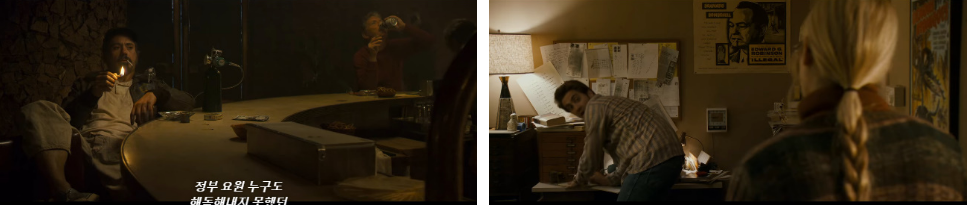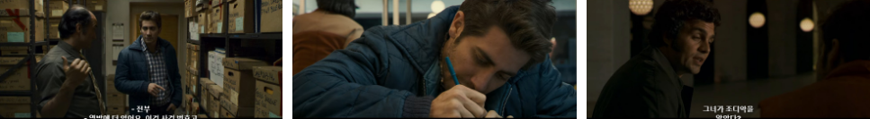 실망만 한 로버트는 조디악에 사건에 더 매달리고.. 하루는 데이브를 찾아가 같이 점심을 먹으며 조디악에 대해서 묻습니다. 경찰들이 조디악 사건에 소홀 한 것 같다며 지금도 혼자서 수사하고 있지 않냐는 로버트 말에 .. 조디악은 3년 째 종적을 감춘 상태고 그 안에 일어난 살인사건이 200건이 넘는다며.. 조디악 사건에 모든 경찰들이 골몰해 있을 수는 없지 않겠냐며 그래도 자기는 관심 없는게 아니라고 합니다. 로버트가 .. 조디악의 최조 암호문에 대해서 연구를 해봤다면서 아마추어 암호문 작성요령이 담긴 한 권의 책을 보여주며 이 책 대출 기록을 추적해 보면 꼬리를 잡을거라고 하죠..그리고 조디악이 군인일지 모른다는 경찰들 말에 군 도서관에서 이 책을 대출한 군인 목록을 찾다가 알게된거라며.. 도서관에 있는 암호관련 도서가 모두 사라졌었다며..누군가 훔쳐간거 같다고 하죠. 훔쳐간 사람이..대출 기록도 없애려고 한거같다고요. 놀랍다는 표정인 데이브한테 로버트가 수사에 도움이 되고 싶다고 하자... 생각을 하다가 그건 안되겠다며 사건을 함께 논하지도 않을거고..원하는 정보도 못 주겠다며.. 나파의 "켄 날로우" 형사를 찾아가 보라는 말도 안 할거라고 하면서 스펠링까지 또박 또박 말해줍니다 ㅋ 눈치를 챈 로버트는 수첩에 받아적구요. ㅎ