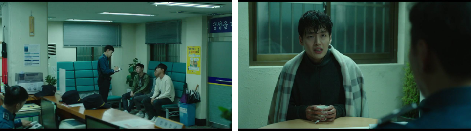 골목 모퉁이에서 몰래 숨어서 형인 유석을 지켜보던 진석은 그 광경과 사람들 얼굴을 자세히 보게 되는데요.. 유석에게 욕을 듣고있는 그 남자 둘은 유석이 납치되어 잡혀간 다음 날에 찾아 온 형사였던 것. 그 형사들은 진짜 경찰이 아닌 가짜 경찰이었던 것이고요.. 유석과 잘 아는 사람들이었고 진짜 경악스러운 것은.. 그들의 진짜 신분은 조폭이라는 것이죠. 조폭들이 경찰로 신분위조해서 진석을 감쪽같이 속였던 것이이에요. 혼란스러워하는 진석은 계속 담배를 피우면서 자리를 이동하는 유석의 뒤를 몰래 미행하면서 밟지만 끝내 놓치고 맙니다.