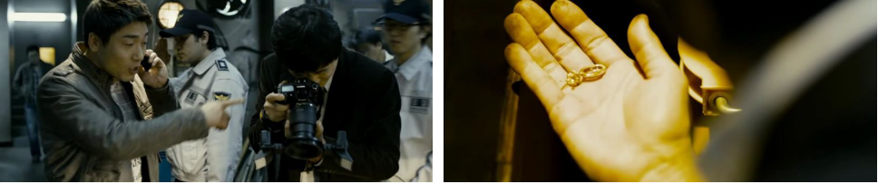 화면은 바껴 살인사건 현장. 죽은 사람은 사채업자 동철인데요.. 최형사가 후배 형사들한테 이것저것 지시를 하고.. 아직 도착을 안 한 감식반한테 전화로 투덜대고 있습니다. 죽은 동철 사체 옆 테이블에 투명한 물컵이 있구요.. 보라색 립스틱 자국을 보고 최형사는 이런색도 다 있냐며 의아해 합니다. 어느새 도착한 성열이.. 요즘 유행하는 핑크바이올렛이라며 아내가 오늘 아침에 그걸 바르고 나가서 알고 있다고 하죠. 농담조로 네 아내부터 조사하자며 젊은 여자를 목격했다는 목격자도 있다는 최형사. ㅎ 성열은 피식 웃으며 여기저기를 꼼꼼하게 둘러보다가 가구 틈새 사이로 떨어진 조그만한 물체를 발견합니다.. 낑낑거리며 손을 뻗어 꺼내보니.. 귀걸이였고.. 아침에 아내 지연이가 착용했던 같은 귀걸이였죠. 마침..아까 귀걸이 한 짝이 없이 귀가한 지연이었구요. 그제서야 고개를 돌려 물컵에 묻은 핑크바이올렛 립스틱 자국을 다시 보면서.. 혹시..아내일지도 모른다는 생각을 처음으로 하구요..