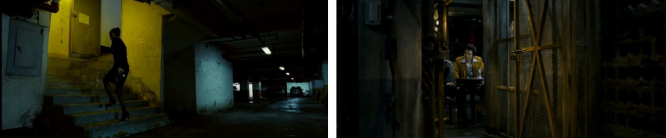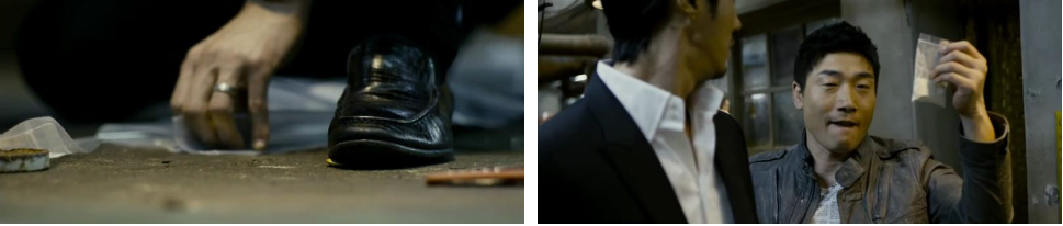 어느 건물 주차장으로 차 한대가 미끄러지면서 들어오는데..주차를 한 차에서 내리는 사람은 바로 성열의 아내 지연. 지저분하고 허름한 건물의 어두운 주차장에서 힐을 신은 지연이 천천히 걸어가 계단을 올라가려는데 급하게 뛰어 내려오는 검은 모자, 검은 자켓 차림의 석준(김인권)이 주변을 두리번 거리면서 지나가죠. 얼마 후 사채업자인 동철은 지연으로 보이는 한 여자와 의자에 앉아 대화를 나누고 있습니다. 웃으면서.. 그래도 계속 진행 하셔야 하지 않겠냐는 동철 말에..무슨 말을 했는지 어떤 반응을 보였는지는 보여지지 않고.. 여자는 투명한 물컵을 들고 물을 한 모금 마신 뒤.. 조용히 일어나요.