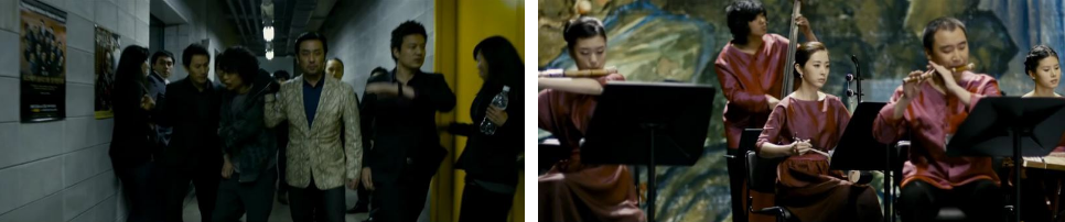 저녁시간 국악원. 단원들과 함께 무대에서 연주를 하고 있는 지연이 보이구요. 1층 로비에서는.. 재칼과 부하들이 목격자 박경호의 옷 목덜미를 잡고 질질끌면서 들어서고 있습니다. 차분한 국악 연주 음악이 은은하게 들리고.. 재칼 패거리들의 엇갈려 정신없는 구둣발 소리도 더해져 긴장감이 고조되구요. 연주가 끝나고 관객들의 기립박수를 받으며 단원들은 서로 인사를 나누고 있는데.. 뒷문을 열고 재칼이 박경호를 끌고 객석 중간만큼 내려옵니다. 봤다는 여자를 지목해 보라는 재칼 말에.. 박경호가 떨리는 손을 들고 무대 위 누군가를 지목하려는 순간.. 위에서 막이 내리고...ㅎ 다시 재칼은 박경호를 끌고 대기실로 가는 길에 단원들 한 명 한 명을 거칠게 잡아 끌며 박경호한테 보여주며 반응을 살피죠. 대기실 문을 박차고 재칼이 들어가자 사람들은 비명을 지르구요.. 지연이 없는 것을 확인하고는.. 박경호를 끌고 다시 나가는데 목덜미가 아니라 머리채가 잡혀있어요 ㅎ
