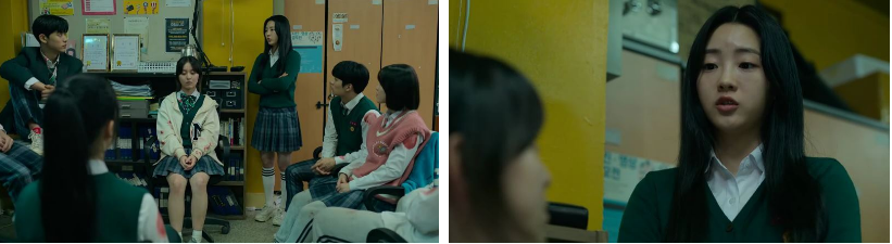 스쿠터를 탄 청산모는 힘들게 효산 고등학교 진입하는 데 성공하지만 경수를 비롯해서 운동장에 있던 좀비들한테 그만 물리고 맙니다. 청산은 창문을 통해 운동장의 좀비들을 보면서 어딘가에 있을 경수 생각을 하고..온조의 위로를 받고나서..나연과 선화샘이 나가고 나서 비명소리나 아무 소리도 못 들었다고 하죠. 청산말에 다른 아이들 역시 자기들도 못 들었다고 맞장구를 치고.. 대수가..그럼 둘이 안죽은거 아니냐고 하는데.. 경수를 일부러 죽게 만들었는데 나연이기 안 죽었으면 다행이냐고 민지는 싸늘한 표정으로 묻죠. 나연이도..선생님도 둘 다 자기 발로 나간거니깐 우린 잘못이 없는 것이고 자책할 필요가 없다고 하자..다시 아이들은 시무룩. 급해보이는 수혁이 화장실 가고 싶은 사람 없냐고 분위기를 깨는데.. 대수가 손을 들죠 ㅎ