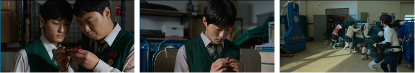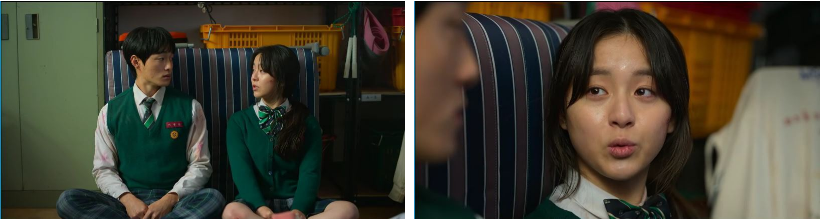 창문을 통해 끙끙거리고 옥상을 오른 귀남이 텅빈 옥상을 둘러보며 다 어디갔냐 한숨을 쉬는 모습이 보이고 다시 비품실 아이들.. 철제 공보관함을 이용해서 나가자는 수혁의 말에 방법면에서 의견이 갈립니다. 공보관함을 낮게 해서 뚜껑을 닫아야 한다는 미진과 높게 쌓아야 한다는 준영이 크게 파이팅하면서 계속 으르렁거리는 미진과 준영. 갑자기 꽝~하는 소리가 들리고 놀란 애들의 시선이 모이는 곳..무표정인 남라가 투표로 결정하자고 해요. 1번 2학년, 3학년 따로가자에 아무도 없고..2번 같이 가자에 다수의 애들이 손들고.. 미진, 준영 쭈뼛거리며 손을 들어 만장일치 ㅎ 다음 안건으로 가자는 무표정인 남라. ㅎ 1번. 미진생각처럼 하자는 사람은 하리를 포함해서 2학년 3명, 2번 준영의견처럼 하자는 사람은 나머지 2학년 4명. 남라 너도 해야 결정난다는 미진말에 가차없이 1번이라는 남라. ㅎ 결국 준영의 말처럼.. 공보관함을 뚜껑 닫지말고 높게 세워서 가자는 쪽으로 결정이 납니다. 아직도 자기 의견이 더 나을 것 같다고 생각하는 미진은 한숨을 쉬더니 나중에 원망말라며 똑 쏘죠.