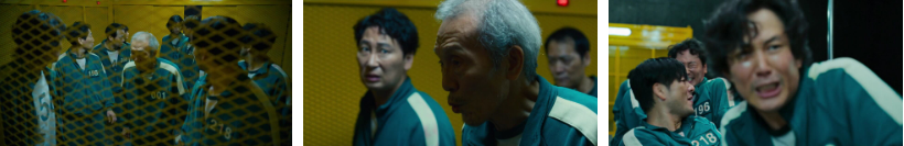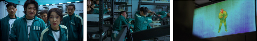 게임장과 숙소로 통하는 미로같은 공간이 있는데.. 달고나 게임이 끝나고 의사 병기는 진행요원을 따라갑니다. 그 모습이 찍히는 씨씨티비를 삭제해주는 또다른 진행요원. 게임이 끝나고 숙소로 돌아온 사람들은 1인당 삶은 계란 하나와 사이다 한 병을 받는데. 식도로 넘어가다 끝나겠다고 양이 성에 차지 않은 덕수패거리들은.. 새치기를 하면서 한 번 더 배식을 받고. 사이다와 달걀은 수에 딱 맞기 때문에 이로 인해 배식을 받지 못한 참가자들이 생기고 다툼이 일어나는데 덕수가 자신한테 항의하는 참가자를 죽여버려요.
