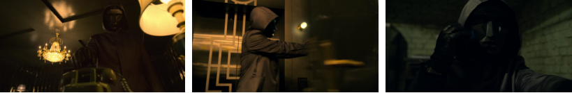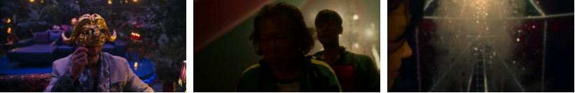 게임의 주최측 최종보스로 보이는 한 남자가 정갈한 양복을 입고 동물 탈을 쓰고 앉아 있는데...VIP들이 도착했다고 말을 하는 프론트맨. 보스는...천천히 탈을 벗어 놓고 일어서는데.. 얼굴을 보이지 않죠. VIP들이란 이 게임을 즐기는 외국인 방청객들이었어요. 영어를 사용하고 역시 동물 탈을 쓰고... 숲속을 연상시키는 몽환적인 공간에서 참가자들의 목숨을 내건 피말리는 게임을...그들은 편안히 앉아 와인잔을 들고 웃고 농담하며 방청을 해요. 준호는 VIP들에게 음료를 나르는 진행요원 한 명을 제압하고 그의 가면을 쓰고 대신 들어가고.
