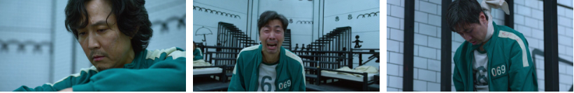 일남이 자신 때문에 죽었다는 생각에 괴로워하는 기훈을 보며 상우는..여기서 잠깐 만난 노인네였고.. 상황은 다른 사람 다 마찬가지라며 그만 자책하라 합니다. 괴로운건 중년남자도 마찬가지 ㅠ 게임을 여기서 제발 멈추자고 호소해요. 상우는..당신 미쳤냐면서.. 그런다고 당신 아내가 살아 돌아오는 것도 아니고 밖에 나가 돈도 없이 죄책감만 끌어안고 살 자신 있냐고 절대 안된다고 소리를 치는데요..ㅠ 얼마의 시간이 지나고 심신이 지칠 대로 지친 남은 참가자들이 여기 저기 흩어져서 휴식을 취하고 있는데 요원들이 관을 들고 오고.. 졸고 있었던 기훈은...뭔 일인가 싶어 주변을 둘러보면...그 아내를 잃은 중년남자가 목을 매 죽어있어요. 다들 놀라 멍해있지만..덕수 혼자 쯧쯧쯧 하는 표정..남은 인원 16명.