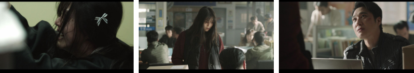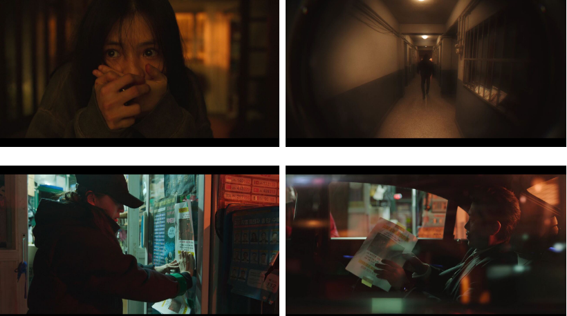 어두운 방안. 지우는 발신자 정보 없는 한 통의 전화를 받게 되는데.. 자기가 그 사람 알고 있으니 문자로 보낸 장소로 돈 가지고 나오라는 내용이죠. 장례식때 들어온 조의금 봉투 뭉치와 맥가이버칼을 챙겨들고 길을 나선 지우.. 최대한 얼굴을 가린 복장으로 몸을 사리며 걸어가는데 어떤 남자가 아는체를 하면서 돈을 요구하죠. 지우는..그 남자한테 봉투를 보여준 후 뒤로 감춘 채 그 사람이 누구냐고 물어보는데 지우 뒤에서 몰래 접근한 남자가 봉투를 뺏고..이 사람 저 사람한테 밀쳐지며 두들겨 맞은 지우가 정신을 잃어버리고 두 손이 앞으로 묶인 채 다시 눈을 뜬 곳은 덜컹거리면서 달리고 있는 차 트렁크 속. 그 때 달리던 차가 다른 차랑 부딪치고..싸우는 소리가 들리자 지우는 갖고 있던 맥가이버 칼로 끈을 풀려고 안간힘을 쓰고 있던 그 때.. 트렁크 문이 확 열리고..깜짝놀란 지우가 들고있는 칼로 무작정 찌르려는데.. 보면.. 무진의 무표정..