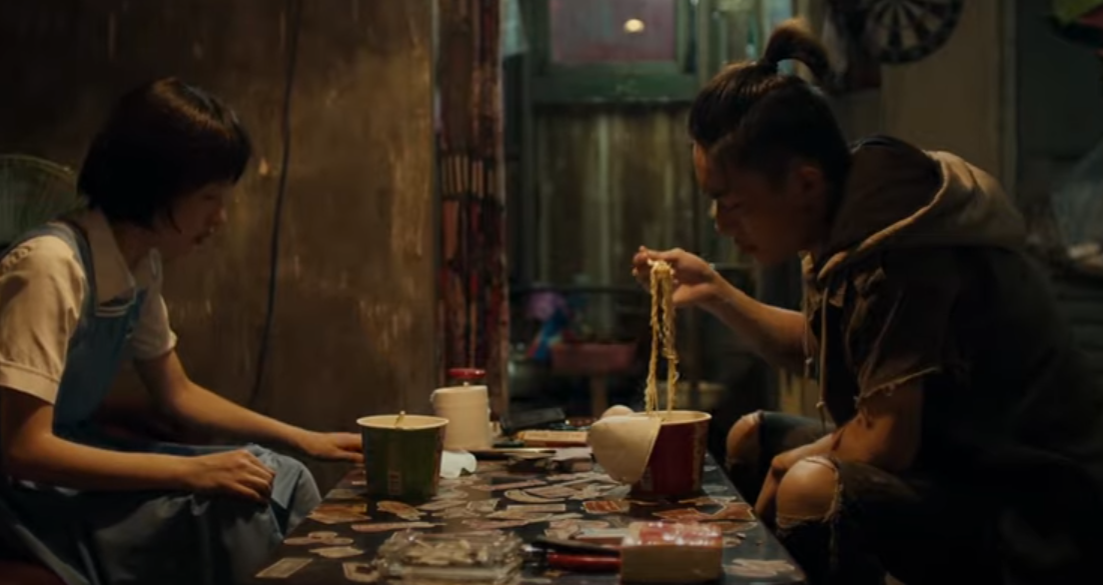 첸니엔이 어딜가든 남자는 열 발자국 뒤에 따라가고 (같이 나란히 걸으면 깡패들의 표적이 된다고) 첸니엔은 일진들의 눈을 피해 남자가 지내는 곳으로 들어와서 함께 동거를 해요(컨테이너같은 공간인데 첸니엔은 침대, 남자는 소파 이런식으로) 영화를 보면서.. 나중에 저게 또 알려져서 첸니엔의 발목을 잡는건가 했더니. 다행히 영화 끝날 때까지 그러진 않더라구요 ㅎ 그렇게 지내는데 계속 첸니엔이 일진을 무서워하니깐 남자가 (극중이름 '샤오베이' ) 어두운 골목길 같은 데서 일진한테 살짝 겁을 줘요. 첸니엔이 학교 수업이 끝나면 뒤에서 지키며 같이 집으로 가는 게 일상. 하루는 샤오베이가 성폭행범의 용의자 중 한명이 돼 경찰서에서 조서를 받는 바람에 첸니엔은 학교는 커녕 집에도 못들어 가게 되고, 그 날 일진 패거리들이 혼자 샤오베이 집으로 가는 첸니엔을 삐잉~ 둘러싸더니 엄청 구타를 하죠 ㅠ
