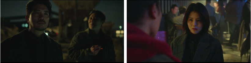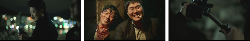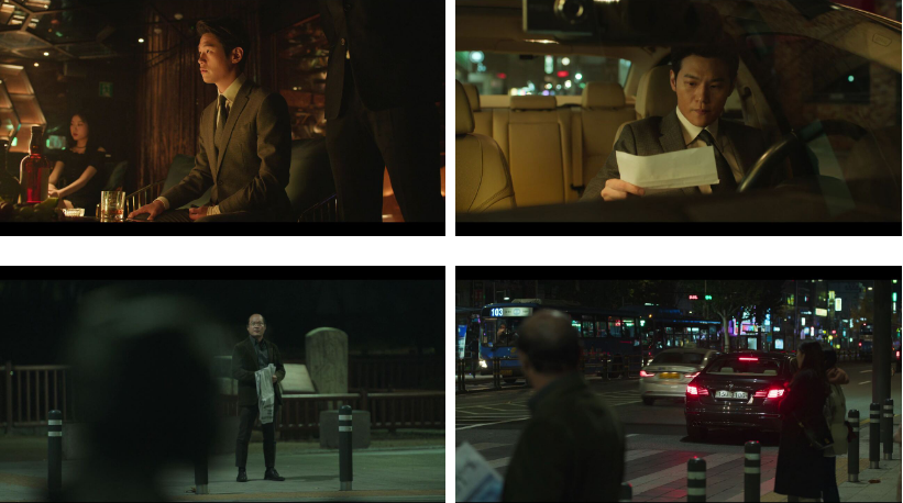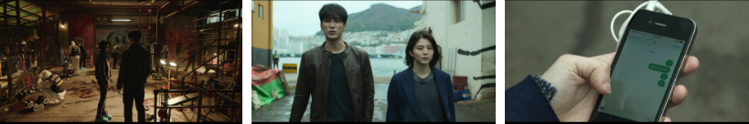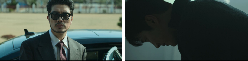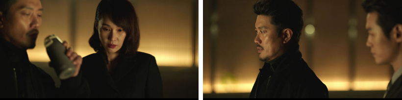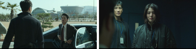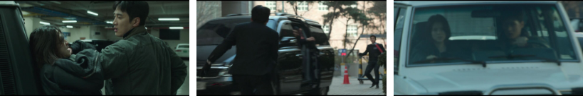 가운을 입고 도망가는 지우를 한템포 느린 속도로 쫓는 필도..지우가 엘베를 타고 지하 2층으로 내려와 간호사가 건네준 차키를 눌러보는데..소리가 나는 차로 가서 타고 출발을 하려는데..급하게 뛰어나온 필도..앞을 가로막습니다. 지우를 차에서 끄집어 낸 필도와 무슨 수를 쓰더라도 가려는 지우. 그렇게 육탄전을 벌이다가..필도는 가지고 있는 수갑으로 자기 팔목과 지우의 팔목을 채우죠. 그들 앞으로 동천파 조직원들이 나타나고..수갑으로 묶인 지우와 필도는 있는 힘껏 조직원들을 밀쳐내서 차를 타고 이들을 따돌립니다.