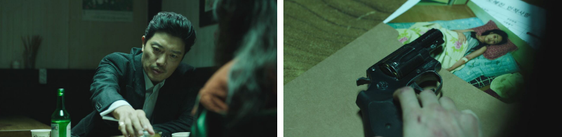 눈이 흩날리는 날..아빠 송준수..엄마 김정아의 부부납골묘를 찾은 지우. 몇 개의 아빠 유품과.. 두 개의 유골함 앞에.. 지우가 아주 어렸을 때 세 명의 가족사진이 놓여있고..한참을 바라본 지우가 문을 닫고 열쇠를 채운 후.. 꽃다발을 앞에 내려 놓아요. 그리고 위에.. 경찰제복을 입은 자신과 아빠가 나란히 있는 합성된 사진을 두죠. 화면이 바뀌고.. 비가 내리는 다른 날.. 우산을 쓰고.. 필도 가족묘를 찾은 지우.. 동생과 함께 찍은 필도의 사진을 초연한 눈빛으로 바라보다가.. 돌아서는 지우 모습에서. 끝