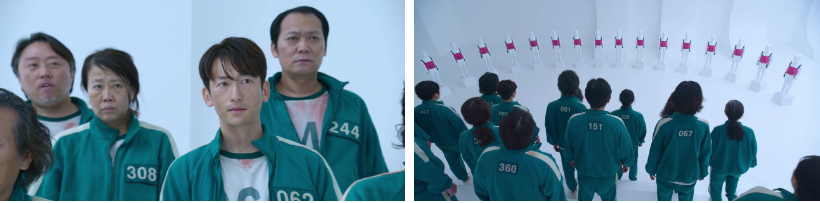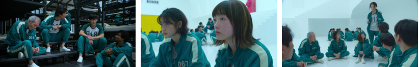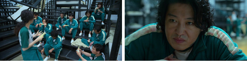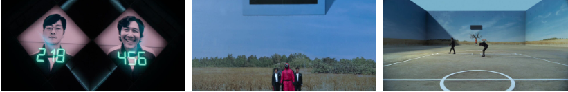 그러자 재미로 사람들을 죽이는 그런 일을 하냐고 어이없어하는 기훈한테 일남은 또 그래요. 자네가 잊은 것 같은데, 난 누구한테도 게임을 강요한 적이 없어..자네도 제발로 다시 걸어들어오지 않았나..?! 그 말에 기훈은 아무말 못하고... 1분만 있으면 자정. 노숙자에겐 누구도 구원의 손길을 뻗치지 않고 있자..자네의 운도 다 한 것 같다는 일남. 기훈은 당신은 그 안에 왜 들어왔냐고 묻는데.. 어릴 때 친구들하고 뭘 하고 놀아도 시간가는 줄 모르게 재밌었다고.. 관중석에 앉아서는 절대로 느낄 수 없는.. 그 기분을 죽기 전에 꼭 한 번 느끼고 싶었다고 일남은 말해요.