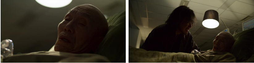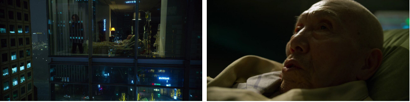 종이에 적힌 날짜에 그 장소로 간 기훈. 어떤 으리으리한 빌딩의 7층... 그 곳엔 침대에 누군가 누워있고.. 다가가 보니 설마설마 했던 바로 일남할아버지...!! 일남이 바로 오징어 게임의 주최측 최종 보스였던 것~!!! 어떻게 된거냐고 따져 묻는 기훈에게 한 참을 가만있던 일남이...창밖 거리를 봅니다. 거리에는 어떤 남자 한 명이 누구의 도움도 못 받은 채 쓰러져 있고...행색으로 봐선 노숙자로 보이고 술에 취했는지 몇 시간째 저러고 있는데 기훈 자네 같으면 가던 길 멈추고 냄새나는 노숙자를 도와줄 수 있겠냐고 묻고..그러면서 자기랑 게임 한 번 더 하자고 해요. 자정이 되기 전까지 20분 정도 남았는데 자정이 되기 전까지 저 노숙자가 누군가로부터 도움을 받으면 자네가 이기는 것이고 그렇지 못하면 자기가 이기는 거라고.