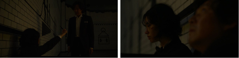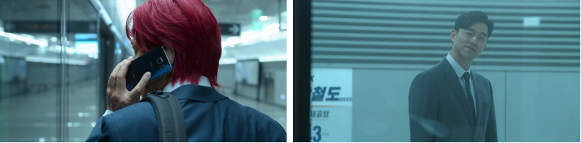 미국에 있는 딸한테 가기 위해 지하철을 타고 공항으로 가는 길..역에 내린 기훈은.. 반대쪽 라인에서 어떤 남자랑 딱지를 치는 공유를 봅니다. 공유도 기훈을 보고 야릇한 미소를 지어보이는데. 후다닥 건너가 보니 공유는 전철을 타고 가버리고 남자만 오징어게임 명함을 손에 쥐고 있는데 기훈이 절대 안된다며 그걸 뺏어버려요.