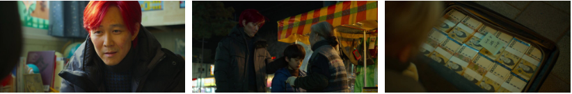 미용실에서 머리도 자르고 빨갛게 염색을 한 기훈. 새벽의 동생을 보육원에서 데려와 상우모한테 맡기죠. 상우모는 생선장사 그만두고 붕어빵 장사를 하는 듯해 보이고.. 암튼.. 걱정하지 말고 다녀오라는 상우모한테 새벽이 동생 짐으로 보이는 캐리어 하나를 드리고 가는데. 그 캐리어 안에는 새벽 동생 짐이 아니라..5만원권 돈으로 가득. 상우한테 빌렸던 돈이라는 메모 한 장도 들어있어요.
