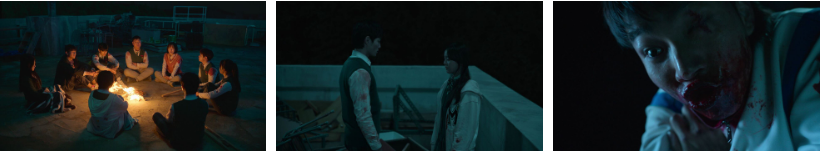 플래시를 비추며 계단을 통해 옥상으로 올라간 아이들은 옥상 문을 열고.. 눈이 내리는 옥상 한 가운데 피워진 모닥불을 보고 있는데.. "왔어~?" 하는 남라의 목소리가 들립니다. 아이들이 돌아보고 수혁이 제일 놀란 표정으로 있는데.. 어둠 속에서 모습을 드러낸 남라...아이들을 보고 환하게 웃고 있죠. 집업점퍼를 입고 있는 남라가.. 전부 다 보고 싶었는데..그럼 안 될 것 같았다고 해요. 그러면서 같이 가자는 온조한테.. 나같은 애들이 몇 더 있다며 여기서 할 일이 남았다고 하죠. 학생이 어른도 아니고 아이도 아닌 것처럼.. 자기도 좀비도 아니고 사람도 아니라는 남라한테..온조는 가까이 다가가서 괜찮다고 손을 잡아주는데.. 온조 손을 가만히 내려놓는 남라가.. 같이 안 있어도 내 친구 맞지 않냐고 천천히 아이들을 바라보는데.. 수혁이가.. 어디에 있어도 우리는 친구라고 하죠. 그럼 됐다고 웃는 남라.. 갑자기 표정이 굳어지고.. "또 왔다.." 고 중얼거리며 허공을 잠시 응시해요.아이들한테 다시 오겠다는 말을 남기고.. 지퍼를 목까지 끌어올린 남라가 달려가 옥상을 가볍게 뛰어 넘는 모습을 아이들은 놀라 멍하게 쳐다보고 있다가... 남라는 자신들과 다른 존재가 돼버렸음을 결국 실감하는 아이들 표정에서... 끝.^.^