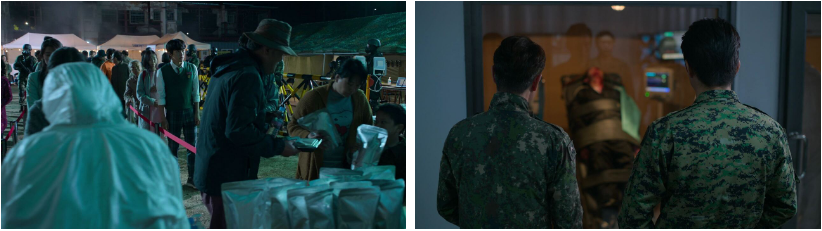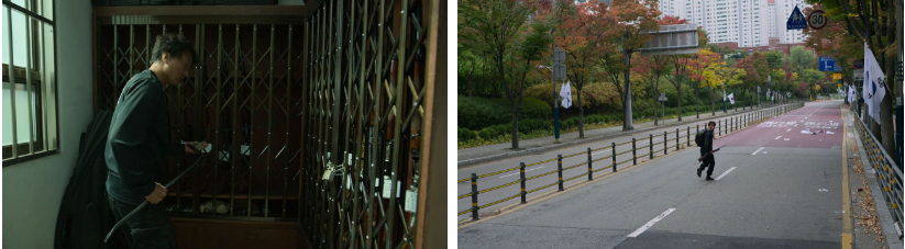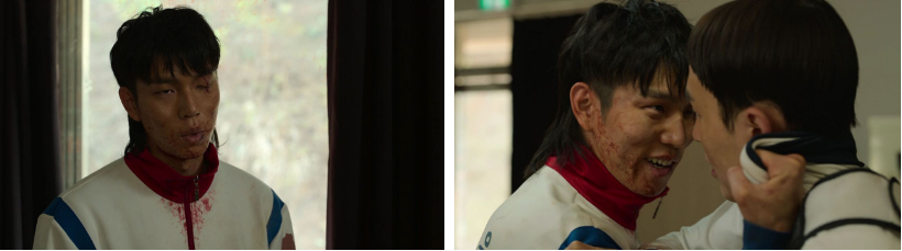 멍하게 있다가 손에 쥔 돈들을 보고. 에라~모르겠다 하는 표정 ㅋ 집으로가는 길.... 고등어 한 마리를 사러 '상우'라는 동네 아는동생네 생선가게로 갑니다. 동네 동생인 '상우'는 서울대 경제학과 수석입학을 하고 펀드매니저로 일하는 엄마의 큰자랑. 상우의 안부를 묻는 기훈한테 상우모는 며칠전에 출장간다고 갔다면서 회사에서 인정받는 상우처럼, 너도 엄마 속 그만 썩히고 정신 좀 차리라 하며 생선값은 됐다고 그냥 가져가라는데.. 돈있다며 느물거리는 표정으로 만원 한 장을 꺼내 드리죠..ㅎ 집으로와서 ...돈 어디서 생겼냐며 별별 의심을 하는 엄마한테 노름도 아니고 훔친 것도 아니고.. 자기의 손, 얼굴, 몸뚱이로 죽도록 번 돈이라고 ㅋㅋ 그리고 기훈은.... 가영(기훈딸)이가 자기 엄마랑 새아빠랑 내년에 미국으로 간다는 말을 듣게 되죠. 새아빠가 미국으로 이직을 하게 됐다고. 늦은밤..딸아이하고 찍은 사진을 보고있다가...심란해진 기훈이.. 공유가 준 명함에 적힌 번호로 전화를 걸어 게임참가 접수를 하게 되고... 그날 밤, 픽업 나온 스타렉스 차량에.. 올라 타는데.. 보면 차안에 이미 여러명이 쓰러져있고...새어나오는 가스로 기훈도 바로 넉다운.