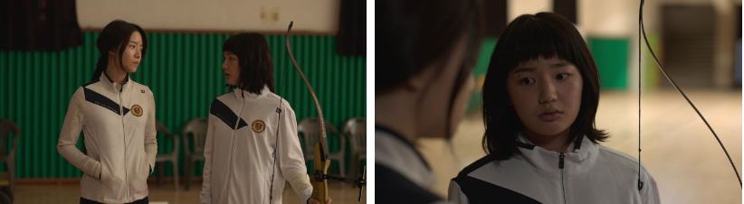 양궁부 합숙소. 미진은 하리한테 활쏘는 법을 배우고 있어요. 잘 안되는 활을 겨누며 그래도 공부하는거보다 어려운 게 있겠냐는 미진한테 표정이 어두워지는 하리가.. 공부하는 애들이 전국 100등이면 다 서울대를 가겠지만.. 자기들이 전국 100등 하면.. 국가대표팀도 실업팀도 아무데도 못간다고 합니다. 국가대표에 떨어졌다며 하리는 한숨을 쉬며 그자리에 앉아버리고.. 자기는 활쏘는 게 너무 좋아서 어렸을 때부터 양궁을 시작했지만.. 이제는 어디에서도 활을 쏠 수 없게 됐다는 하리. 미진은 보다가.. 다른 국가대표들 다 좀비되면 너가 다시 국가대표 될 거 아니냐고 하는데.. 그걸 위로라고 하냐는 하리가 기막힌 표정으로 웃어보이죠.. 미진이.. 자기는 '조삼모사'라고 합니다. 조금 알면 삼번, 아예 모르면 사번.. ㅎ 그러면서 답만 피해간다고 하자.. 하리가 웃어보이고.. 자기도 화살을 쏘면 더 도움이 되지 않겠냐며 빨리 가르쳐 달라는 미진이 손을 내밀죠.