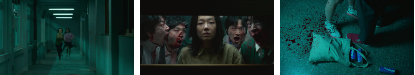 상공에 떠 있는 헬기의 프로펠러 소리가 요란한 가운데 은지가 운동장을 천천히 걸어가면서 자신 옆을 그르렁거리며 지나가는 좀비들을 봅니다. 자신을 괴롭히던 아이들과 자신의 고충을 묵살해버렸던 학생주임샘이 좀비가 된 채 뛰어가는 것을 본 은지는 희열을 느끼는 듯 하더니..홱 돌아 학교건물 쪽을 보더니 갑자기 뛰어가 교무실로 들어가 선생들 책상위를 마구잡이로 뒤져 라이터를 찾아 불을 내버립니다. 그리고는 언젠가 옥상에서 철수한테 학교가 다 불타버렸으면 좋겠다고 중얼거렸던 때를 떠올리며 한참을 웃고는 밖을 나가요. 차들이 뒤엉켜 쓰러져 있는 학교 교문까지 걸어나온 은지가 앞에 쓰러져있는 자전거를 타고 여유로운 표정으로 어디론가 갑니다.