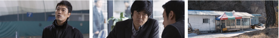 영화는...철민(장혁)이 퇴근하고 운전을 하며 집으로 가고 있는 장면에서 시작합니다. 아파트 단지에 들어서자 앰뷸런스 한 대와 경찰차가 두 세대가 있고 주민들 몇몇이 웅성거리며 나와 있는데..철민이 지나가니 뒤에다 대고 쑥덕쑥덕. 결혼 3주년을 맞아 꽃다발과 케이크를 들고 어리둥절한 표정으로 집으로 들어간 철민이 본 장면은 경찰들이 자신의 집 이곳저곳을 왔다갔다 하고 있는 장면. 식탁에는 결혼기념일을 맞아 아내가 차려놓은 듯한 음식들이 차려져 있고요. 아내는 보이지 않고..조심스레 들어가 보니 침대에 흥건하게 피가 고여 뚝뚝 떨어지고 있는데 그 양은 자그만치 3리터 정도 되는 양. 혈액의 양으로 봐서 시신은 없지만 이미 사망했을거라고 판단하고 조사를 시작합니다. 새벽 5시정도.. 철민은 그 자리에서 경찰한테 체포되죠.