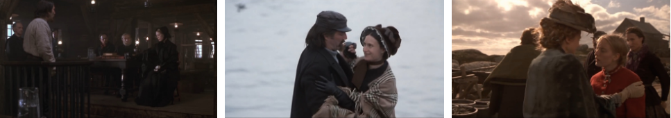그렇게 언니 카렌은 배를 타고미국으로 건너오고.. 오빠 이반의 안부를 묻는 마렌에게..이반은 잘 지내고 돈도 상당히 많이 벌었다며 더할 나위 없이 행복해 하니 신경쓰지 말라는 투로 말하는데 둘의 분위기가 이상하고~ ㅎ 그렇게 카렌은..마렌과 존의 집에서 지내면서 근처 섬 호텔의 하녀로 일하게 되죠. 주방에서 식사 준비를 하는 마렌한테 남편 존은 포츠머스에서 배를 함께 탈 동료를 데려왔다고 루이스 와그너를 소개합니다. 관절염이 있어서 케어를 좀 해줘야 하지만 일은 잘 한다는 루이스 와그너는 이 집.. 다락방에서 지내게 되구요. ㅎ 틈만 나면 마렌한테 루이스는 추파를 던지던 어느 날..관절염 환자인 루이스는 침대에 누워 눈을 감고 있고.. 옆에서 마렌은 책을 읽어주면서..책을 읽다가 루이스가 잠이 든 것을 보고 뭔가를 회상하는데요. 어떤 소녀가 자고 있는 소년한테 다가가 얼굴을 감싸는 장면이죠. 그 이후로도 루이스의 추파를 던지는 추근덕거림은 끊임없이 이어지고요. 어느 날은 입맞춤까지 해버리죠. 입맞춤을 당하고 그 때서야 문을 박차고 나가버리는 마렌..