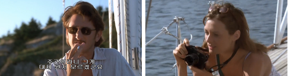 100년 후 여자(이름은 '진') 가 운전을 하고 조수석에 남편(이름 '토마스', 배우 숀펜 ㅎ)으로 보이는 남자가 앉아있습니다. 딸을 시댁에 맡겨놓고 시동생과 시동생 여친이랑 휴가차 보트여행을 하기위해 차를 몰아 사람들을 만나러 가는 중이죠. 남자는 퓰리처상을 수상한 소설과 시를 쓰는..유명한 작가. 여자는 잡지사 사진작가로 주로 살인사건을 다루고 있는 사진작가에요. 둘의 사이는 그렇게 썩..좋아 보이지 않고.. 기분 좋게 휴가 보내러 가는거니깐 억지로 서로한테 맞추는 듯.. 서로의 말끝마다 아냐~. 됐어~, 나중에 얘기하자...등등 불안하게 대화를 하면서 차로 이동을 하고 있고..이내 시동생과(이름은 '리치', 이름처럼 돈도 많음. ㅎ 요트주인) 시동생 여친(이름 '애덜라인')을 만나 같이 100년 전 살인사건이 있었던 스머티노즈 섬으로 갑니다.