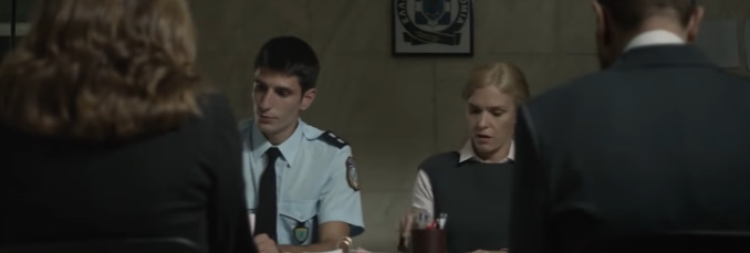 여자 둘을 잔인하게 죽였다는 이유로 감옥에 갇힌 남자 이름은 루이스 와그너, 이 사람 사건에 대한 재판이 열립니다. 살해당한 피해자 두 여성의 관계는 시누이와 올케관계구요. 시누이라는 여자는 아까 감옥에 같이 왔던 남매와 형제지간입니다 죽은여자(카렌), 이반이라는 이름의 남자, 그리고 살아남은 목격자인 여자(마렌) 이런 순서의 형제지간이구요. 올케는 이름이 '아넷' 이고 남자형제인 이반의 와이프였죠. 섬이라 이들은 고기를 잡아서 먹고, 내다 팔며 생계를 이어가는 삶을 살았고.. 살인이 있었던 밤.. 이반과 막내동생 마렌의 남편을 포함한 섬 남자들 몇몇이 고기를 잡으러 배를 타고 바다로 나갔는데 심한 풍랑으로 인해 못 돌아오고.. 그렇게 피해자 두 여성과 목격자 마렌만 한집에서 같이 잠을 잤었죠. 법정 안.. 루이스는 시종일관 겁먹은 표정으로 떨며 서 있습니다. 첫번째 증인은 증인석에 서라는 판사말에 이반이라는 남자가(목격자인 마렌 오빠) 일어서서 증인석으로 갑니다. 고기를 잡으로 나간 다음 날 섬으로 돌아와서 뭘 했냐는 검사의 질문에 곧장 집으로 갔는데 하얀 망사천으로 얼굴이 덮인 채 아내(아넷)가 눈도 못 감고 죽어있는 것을 봤다고 합니다. 그리고 좀 떨어진 곳에 자신의 누나가 죽어 있었다고 하면서 주변에 사람들이 반항한 것처럼.. 물건들이며 벽시계가 떨어져 깨져있었고.. 테이블에 놓인 찻잔을 봤다고 말합니다. 그리고 검사는 사건현장인 집 근처에서 흉기로 보이는 도끼를 발견했다고 합니다.