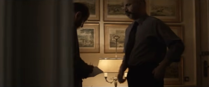 한편, 원래 신분인 '콜드로 경' 으로 살아가기 위해 마술사의 삶을 정리하고 있던 앤지어와 그를 돕는 커터. 예전 커터가 앤지어의 와이프가 죽었을 때 앤지어를 위로해준다고 어떤 익사 할 뻔한 선원이야기를 해 준 적이 있어요. 그 선원이 고향처럼 편안함을 느꼈다 하더라면서요....근데 다시 그걸 언급하면서 커터가 말하죠. 그거 거짓말이었다고.. 그 선원은 엄청 고통스러웠다 했었다고요.. 착잡하고 씁쓸한 표정의 앤지어를 두고..커터는 냉정하게 가버립니다. 혼자 멍하니 있다가 다시 물건을 정리하는데...뭔가가 자기쪽으로 굴러오는 게 보이고 잡아 들어 올리니..빨간 마술 공~!! 보든이 사형대에 올라가 손과 발이 묶이고 몸이 줄에 걸리는 순간, 앤지어가 누군가한테 총을 한 방 맞습니다. 뚜벅뚜벅 걸어오는 사람은 바로...보든!!