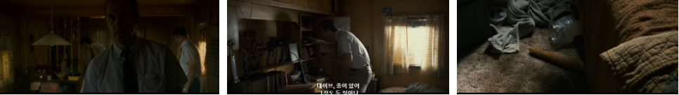 여전히 비가 내리는 어느 날 밤 발레이오 경찰서로 뛰어가 사정해서 파일을 보게 된 로버트는 린다와의 면담을 뮬라넥스한테 말하지만.. 조디악사건은 수사가 종결됐다는 말을 듣습니다.ㅎ 그렇게 경찰서에서 뮬라넥스를 만나고 집으로 돌아온 로버트는 텅빈 집에서 서류들을 정리하고 있는데 전화 벨소리가 울려서 받아보니.. 또 거친 숨소리만 들리고요. 전화를 끊고 돌아서는 순간.. 현관문에서 문고리 돌아가는 소리가 들려요... 문이 천천히 열리면서 달빛으로 인한 사람 형체의 그림자가 길게 드리워지는데요.. 놀라 문쪽을 계속 쳐다보고 있으니 멜라니가 들어옵니다. 무슨 서류봉투 같은 것을 들고오면서..책은 잘 쓰고 있냐고 물어요. 신문사에 전화해 봤다는 멜라니 말에.. 로버트가 자기는 더이상 삽화가가 아니라고 하죠. 고개를 숙이고 있던 멜라니가 들고 온 서류를 들어 보이며 ..우린 인연이 아닌 것 같다고 하죠.. 그런 말 마라며 괴로워 하는 로버트.. ㅠ 안쓰러운 마음에 멜라니가 밥은 잘 챙겨 먹고 있냐고 물어보면서.. 애들이 보고 싶어한다고 하는데. 이런 꼴 보이고 싶지 않다고 로버트는 말하구요... 그런 로버트를 보면서 멜라니는 몇 초간 생각을 하더니 뭔가 결의에 찬 표정으로.. 자기 생각도 그러하니깐.. 되도록 빨리 끝내달라고 들고 있던 서류봉투를 놓고 가버리죠..로버트가 조심히 서류 봉투를 열어보니.. 아서 리 앨런의 운전면허증이 나오구요. 보면 생년월일.. 33년인가.. 그리고 12월 18일이 적혀 있죠.