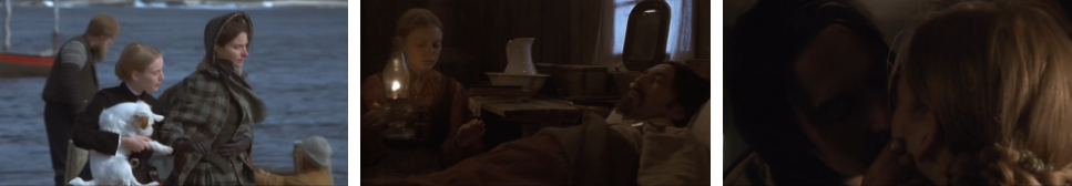 그렇게 언니 카렌은 배를 타고미국으로 건너오고.. 오빠 이반의 안부를 묻는 마렌에게..이반은 잘 지내고 돈도 상당히 많이 벌었다며 더할 나위 없이 행복해 하니 신경쓰지 말라는 투로 말하는데 둘의 분위기가 이상하고~ ㅎ 그렇게 카렌은..마렌과 존의 집에서 지내면서 근처 섬 호텔의 하녀로 일하게 되죠. 주방에서 식사 준비를 하는 마렌한테 남편 존은 포츠머스에서 배를 함께 탈 동료를 데려왔다고 루이스 와그너를 소개합니다. 관절염이 있어서 케어를 좀 해줘야 하지만 일은 잘 한다는 루이스 와그너는 이 집.. 다락방에서 지내게 되구요. ㅎ 틈만 나면 마렌한테 루이스는 추파를 던지던 어느 날..관절염 환자인 루이스는 침대에 누워 눈을 감고 있고.. 옆에서 마렌은 책을 읽어주면서..책을 읽다가 루이스가 잠이 든 것을 보고 뭔가를 회상하는데요. 어떤 소녀가 자고 있는 소년한테 다가가 얼굴을 감싸는 장면이죠. 그 이후로도 루이스의 추파를 던지는 추근덕거림은 끊임없이 이어지고요. 어느 날은 입맞춤까지 해버리죠. 입맞춤을 당하고 그 때서야 문을 박차고 나가버리는 마렌..